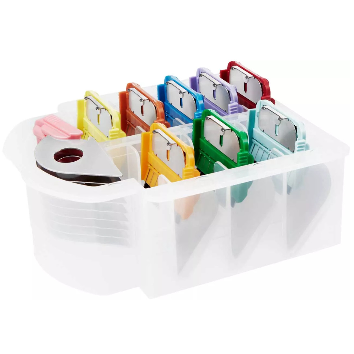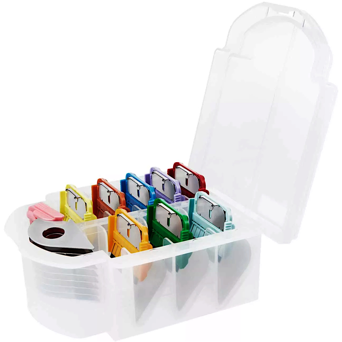 Набор из 9 съемных насадок для машинок Heiniger в кейсе. Дополнительные насадки стандарта A5 делают работу груммера более комфортной и качественной.