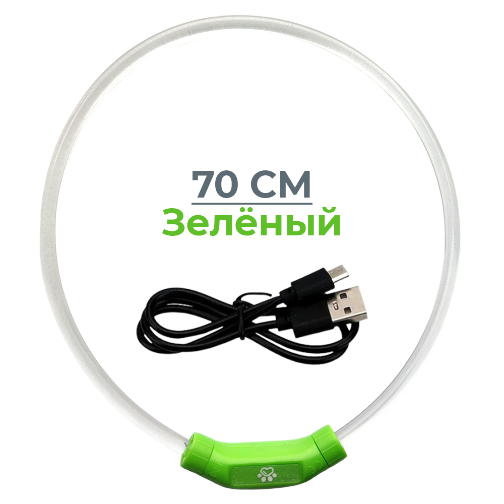 Прочный светящийся светодиодный ошейник предназначен для ночных прогулок, обеспечит безопасность и видимость собаки в темное время суток. Прозрачный силиконовый ошейник с зеленым свечением закрепляется при помощи винтовой пряжки, длину можно легко отрегулировать просто отрезав свободный край ошейника.