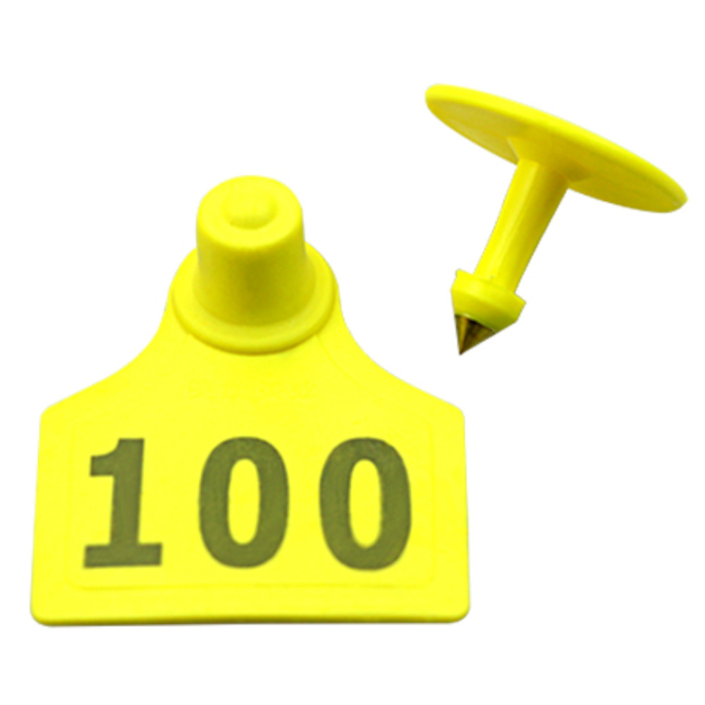Жёлтые двойная бирки для сельскохозяйственных животных, упаковка 50 шт. с номерами.