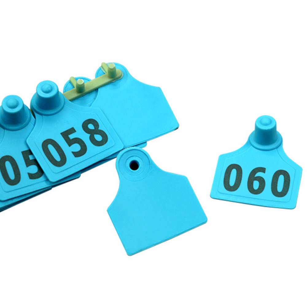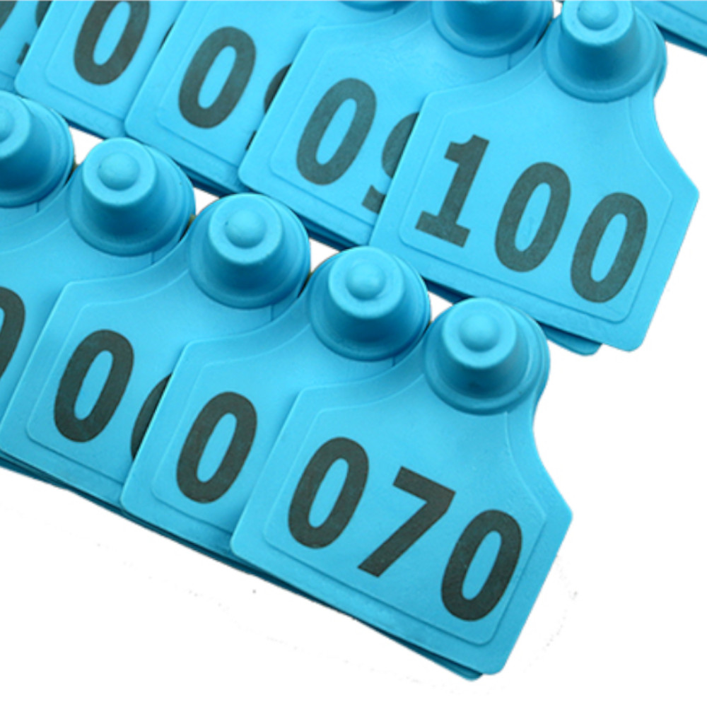 Голубые двойные бирки, для сельскохозяйственных животных, упаковка 100 шт. с номерами. Парная бирка среднего размера 40х50 мм.