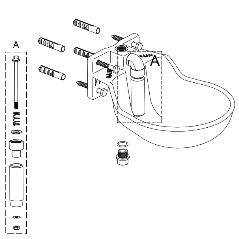 Индивидуальная автопоилка с клапаном для технологии привязного содержания. Изготовлена из прочного и эластичного пластика (АБС). Подходит для поения лошадей или крупного рогатого скота. Обеспечивает непрерывную подачу свежей воды. Конструкция с регулятором потока, который активируется нажатием на рычаг. Поилка крепится к стене с помощью 4 шурупов.