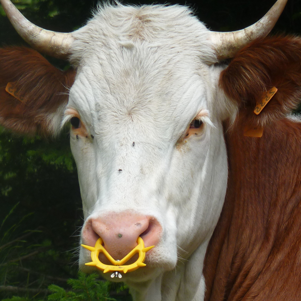 Надежно крепится на хряще носа животного при помощи гайки и болта. Благодаря винту обеспечиваются простое регулирование. Не требует прокалывания. Имеет лёгкий вес и не мешает животному есть и пить. Размер 10,5х7,5 см.