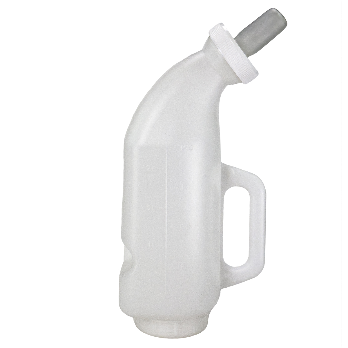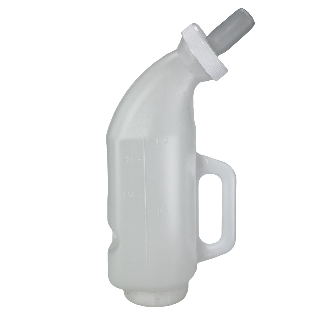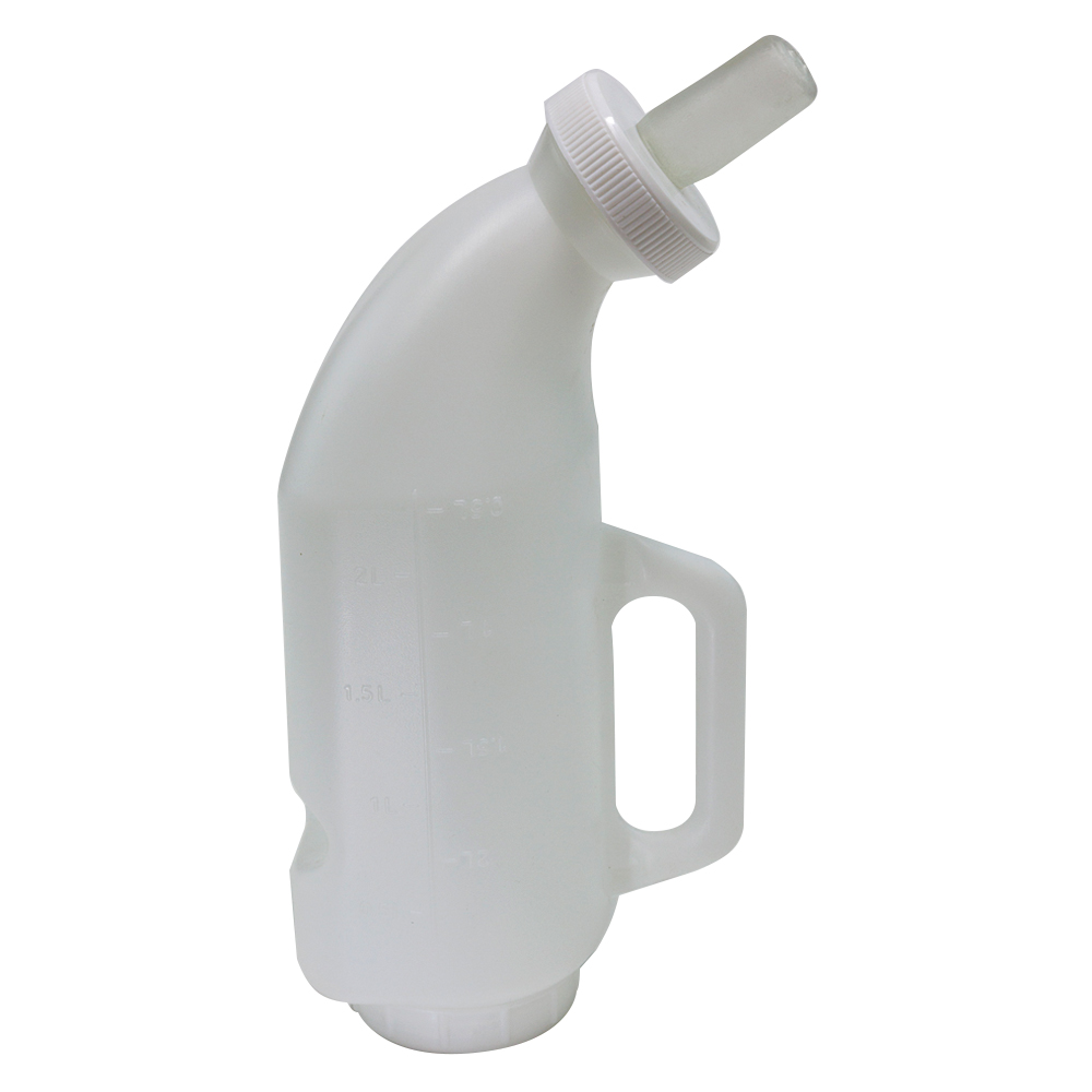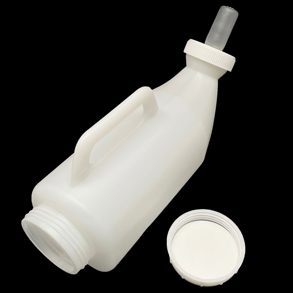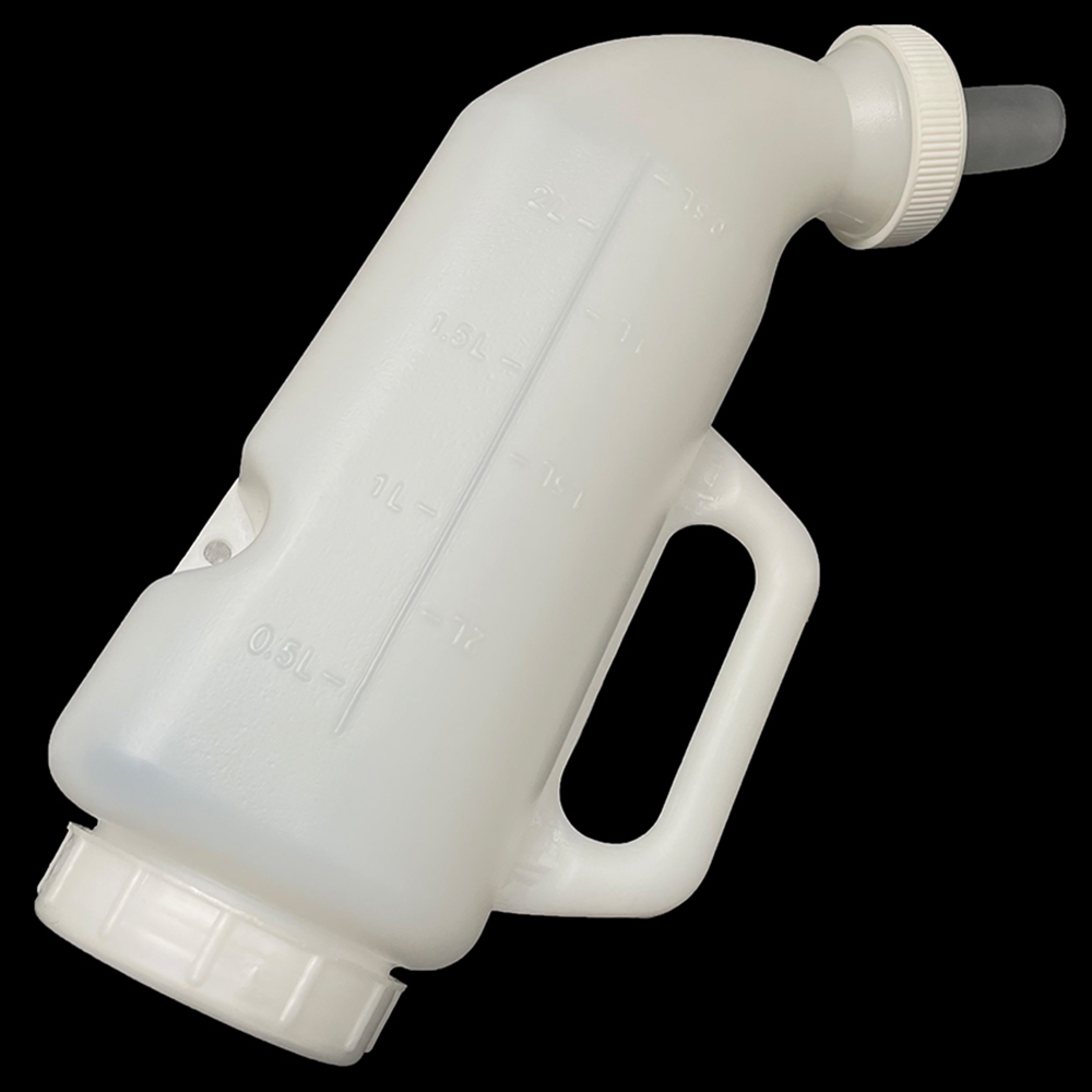 Изогнутая бутылка с силиконовой соской и удобной ручкой для выпойки телят. Объем 2 л. Изготовлена из пищевого пластика. Имеет широкое основание с завинчивающейся крышкой. Толстый пластик, антибактериальная силиконовая соска. Бутылка горизонтального типа, можно повесить на стену.