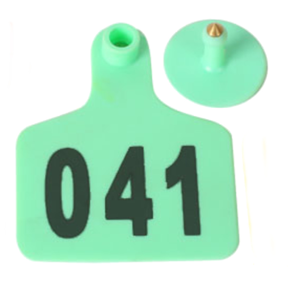 Зелёные двойные бирки для сельскохозяйственных животных, упаковка 100 шт. с номерами.