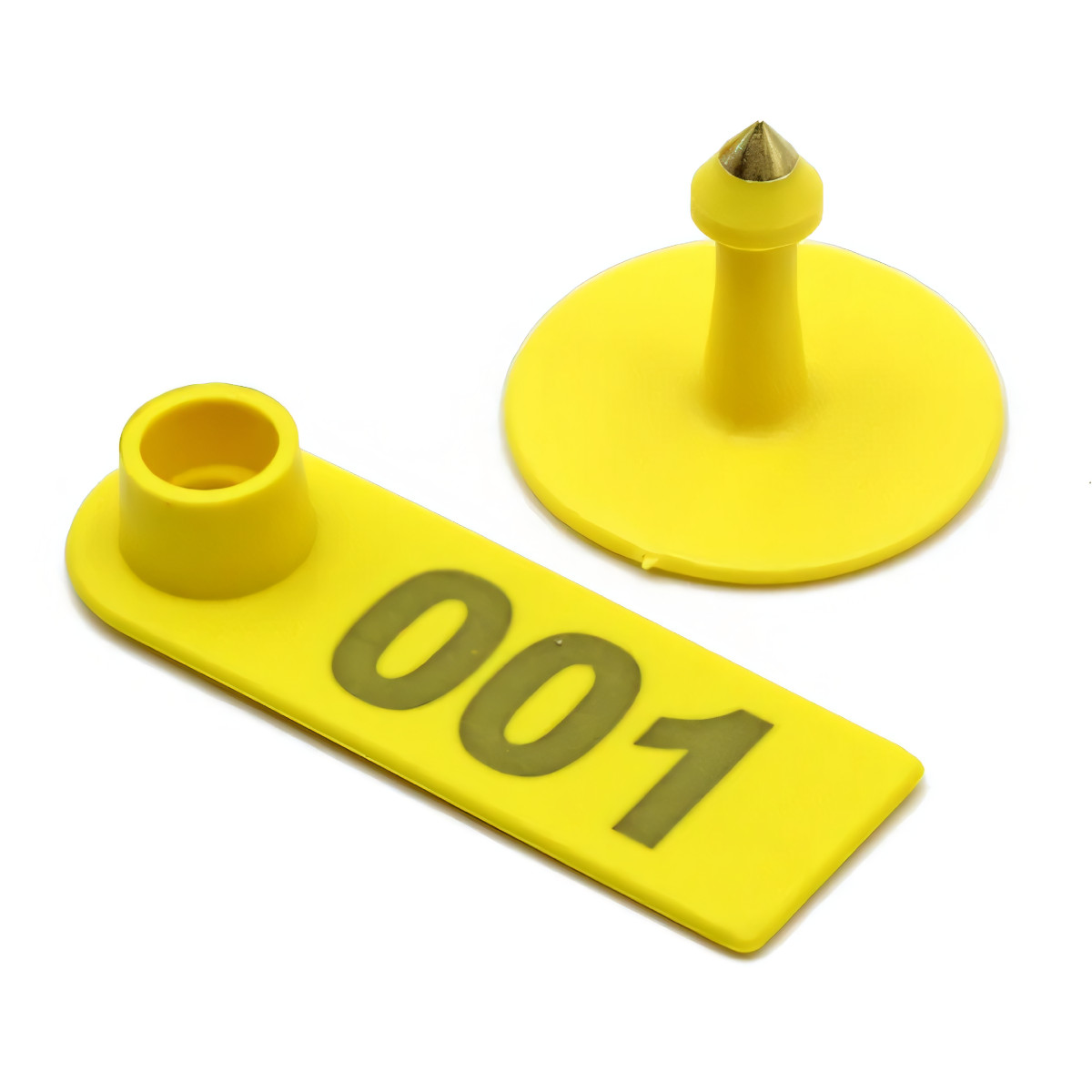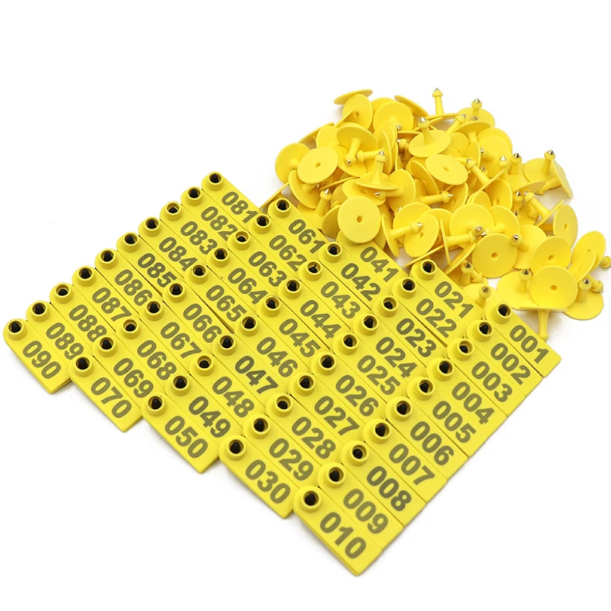 Жёлтые двойные бирки для сельскохозяйственных животных, упаковка 100 шт. с номерами. Номера 001-100