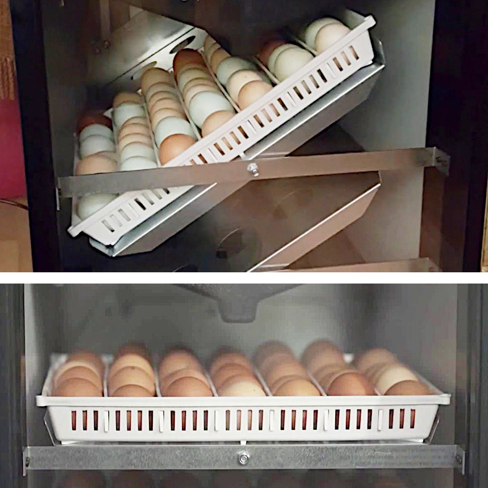 - 3 универсальных лотка с настраиваемыми разделителями для размещения разных размеров яиц.