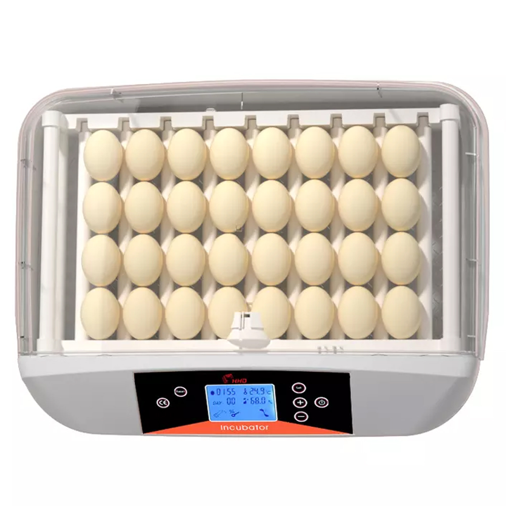Автоматический инкубатор HHD 32 c универсальным поддоном и роликовым лотком. Подходит для куриных, перепелиных, утиных, фазаньих яиц, а также для любых некрупных яиц. Роликовый лоток съёмный, после выведения птенцов можно удалить ролики и разместить птенцов на сетке.