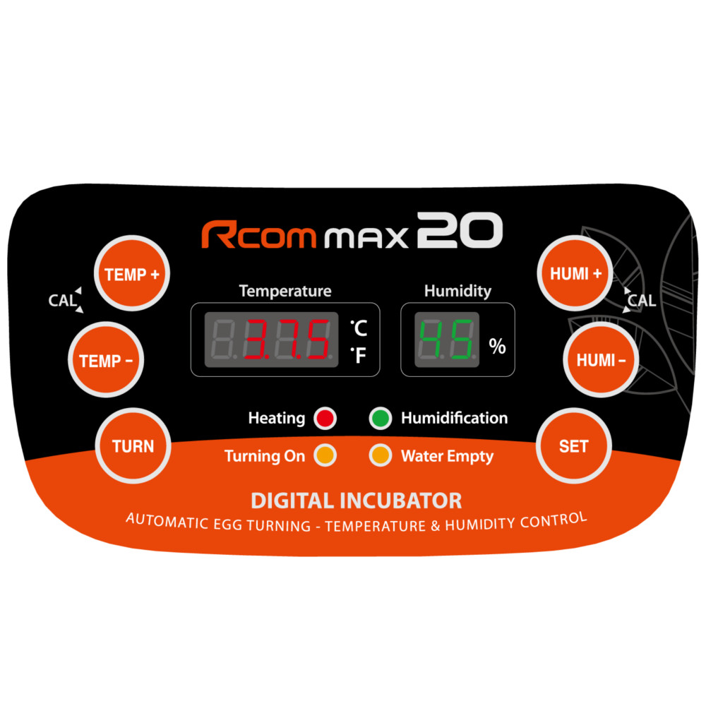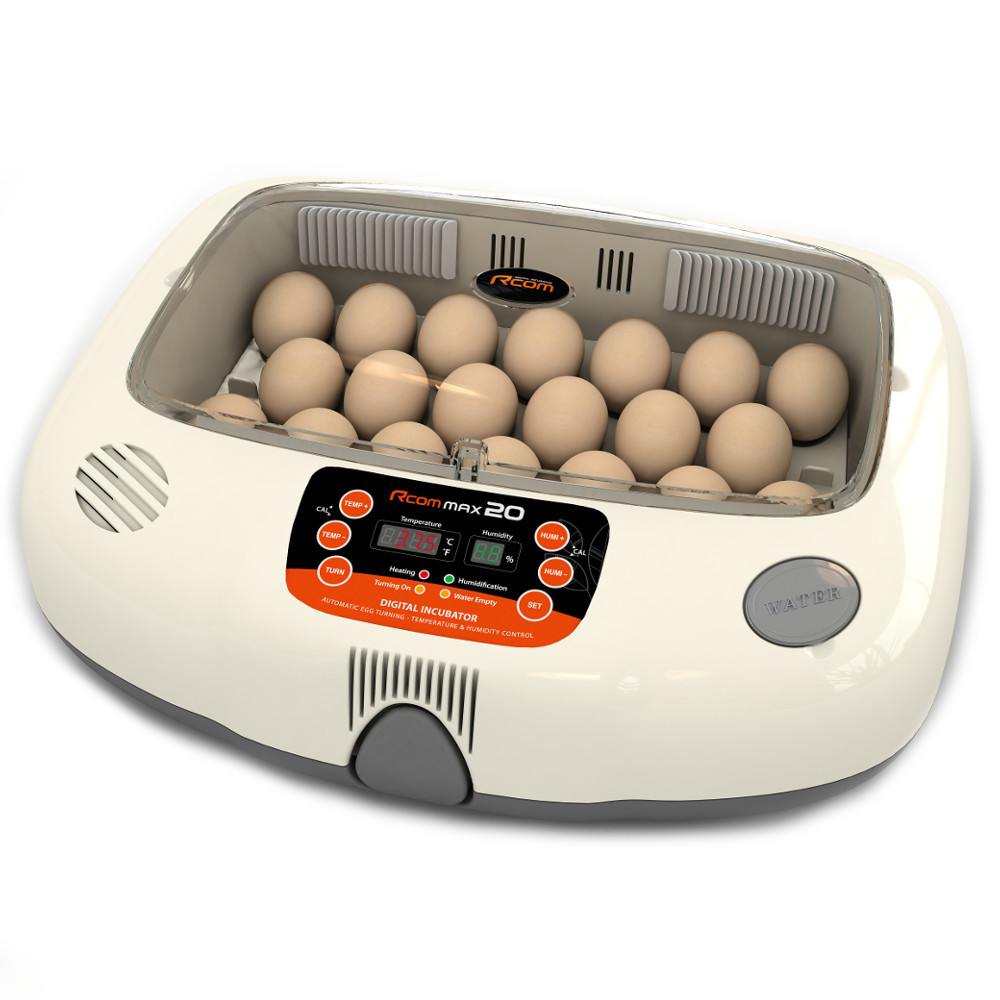 Инкубатор Rcom 20 MAX рассчитан на 20 яиц среднего размера (курица, утка) с универсальными реечными разделителями. Для создания инкубатора Rcom 20 MAX были использованы передовые разработки и новейшие технологии в сфере инкубации, что позволило получить идеальные условия выведения птицы.