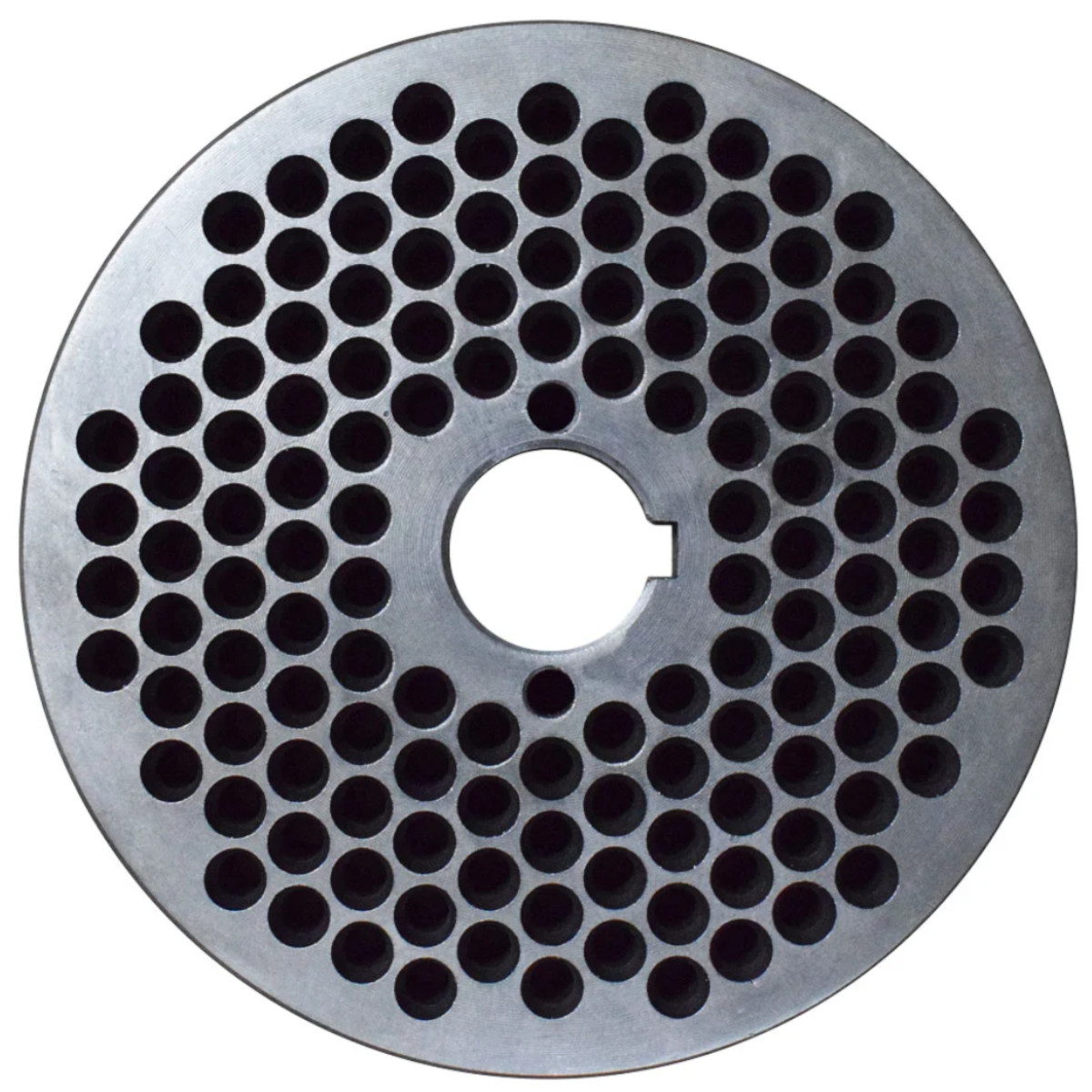 Плоская матрица 150 мм / 6 мм для гранулятора HobbyFarm, изготовлена из качественной стали. В процессе изготовления применяется специальная термообработка в вакууме для более длительной эксплуатации.