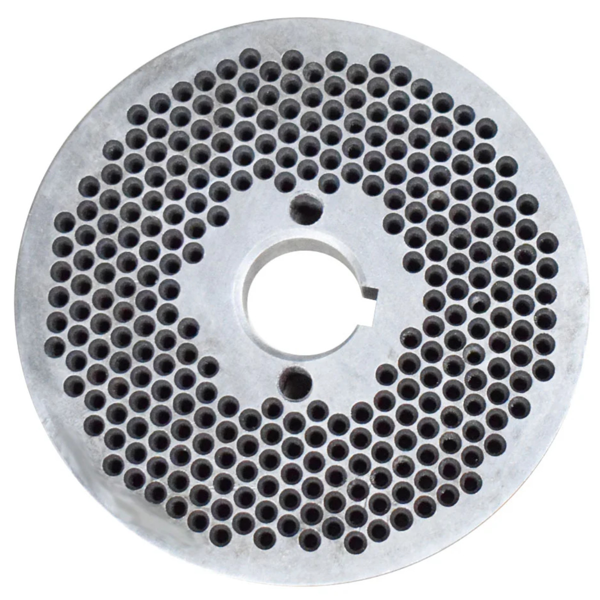 Плоская матрица 120 мм / 3 мм для гранулятора HobbyFarm, изготовлена из качественной стали. В процессе изготовления применяется специальная термообработка в вакууме для более длительной эксплуатации.