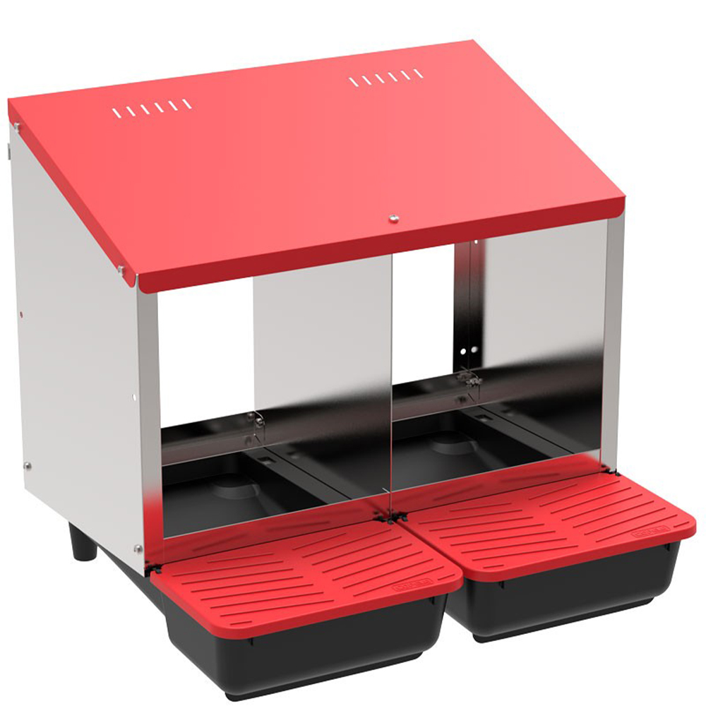 Гнездо для кур несушек Platinum 2-секционное. Гнездо оснащено яйцесборником, по которому яйцо скатывается в специальный лоток, что не позволит птице раздавить или расклевать его.