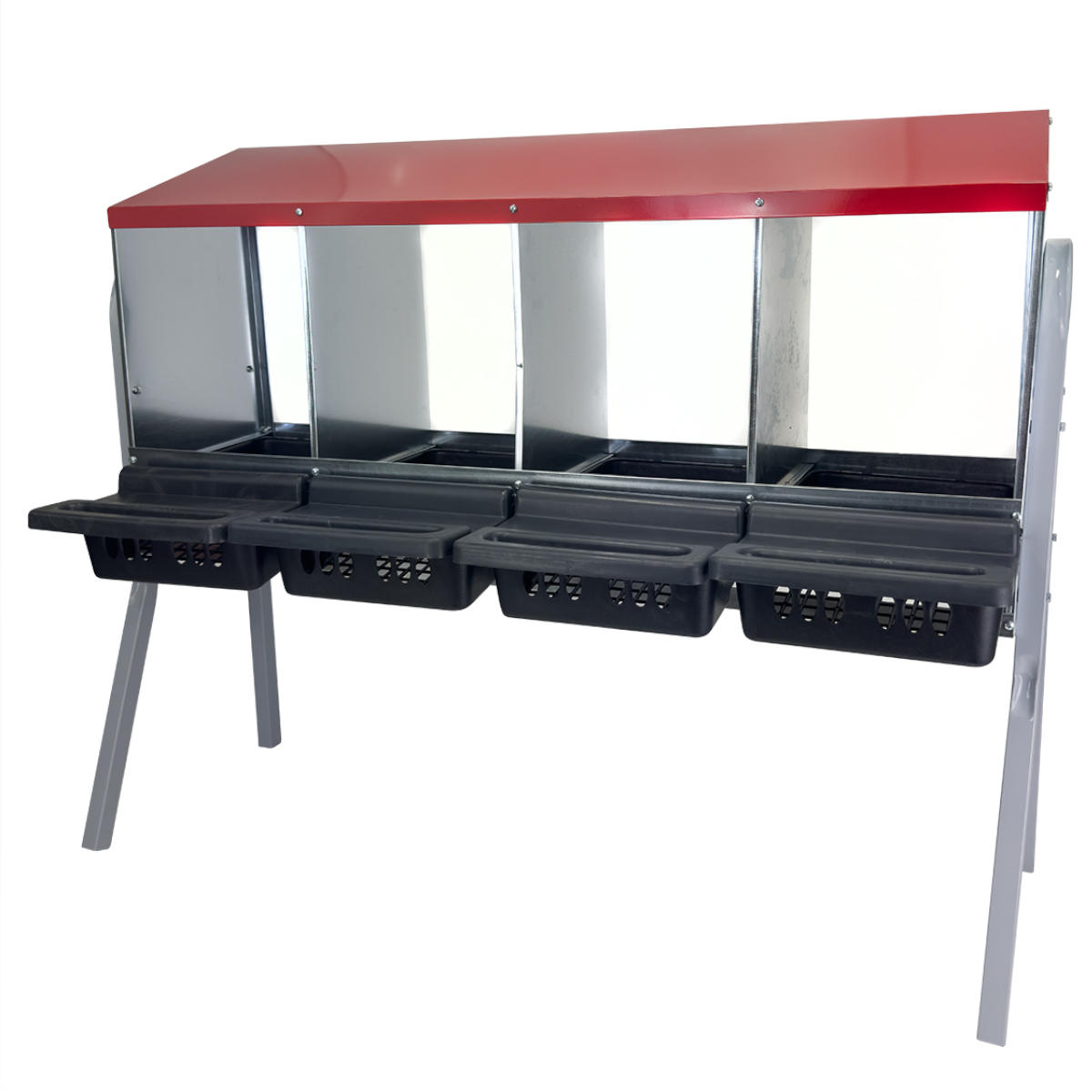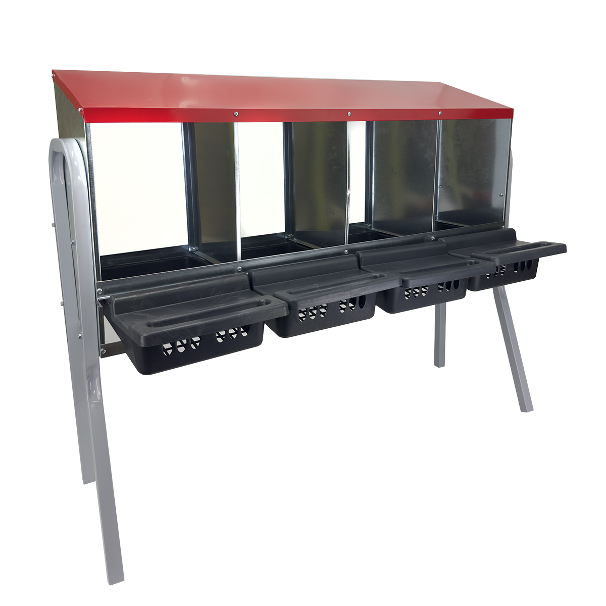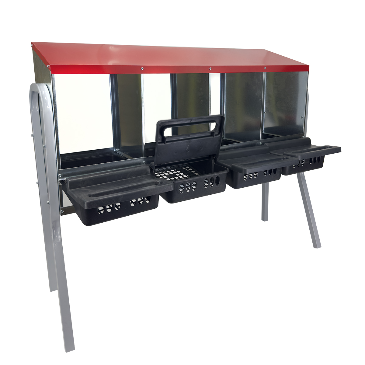 Гнездо для кур Acnplast 4-секционное на съемных металлических ножках: мобильность и комфорт для вашей птицы.