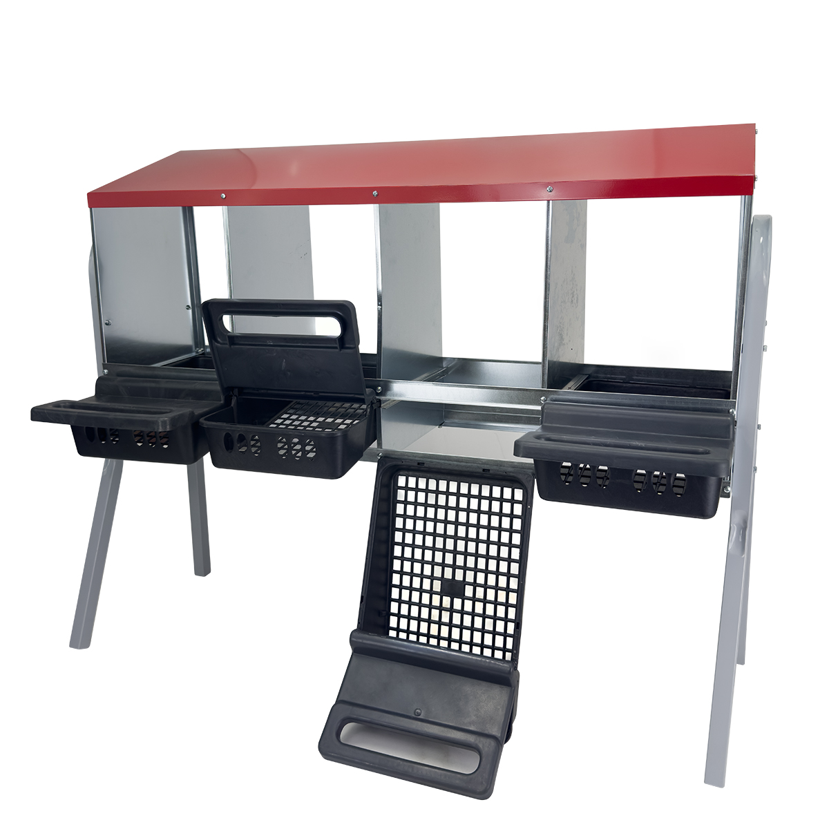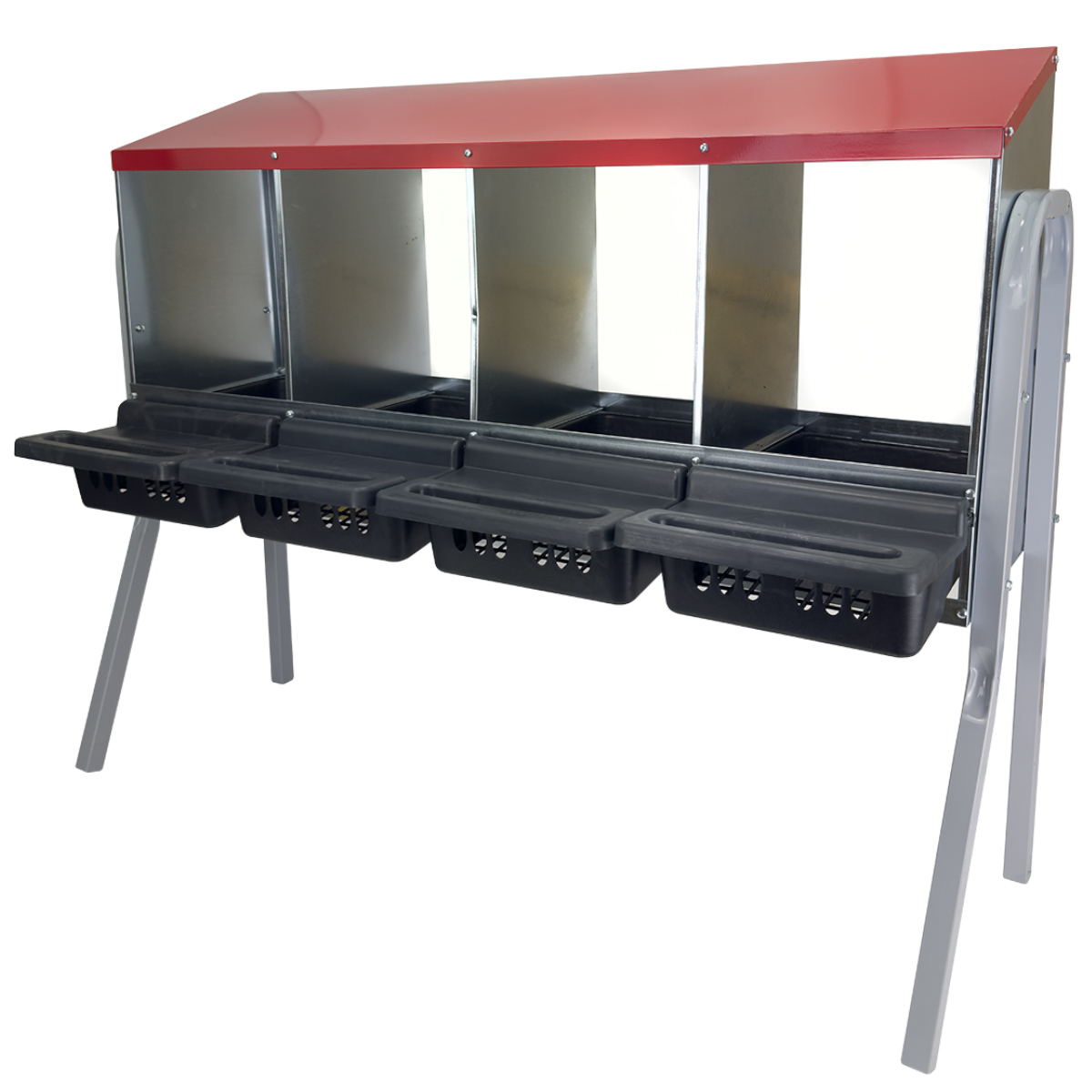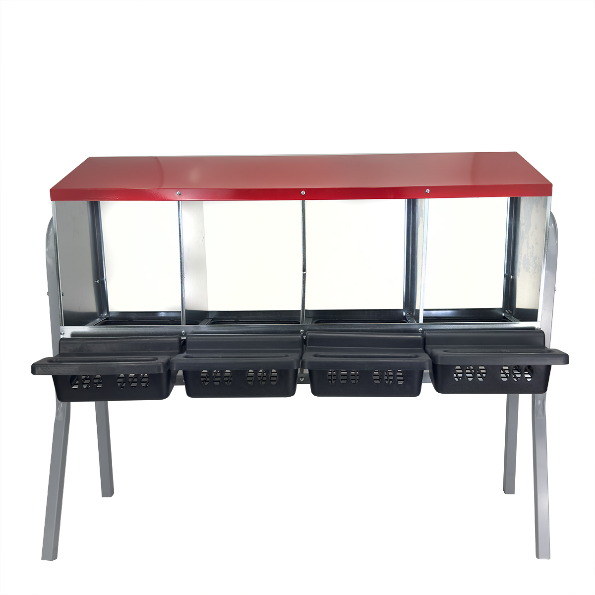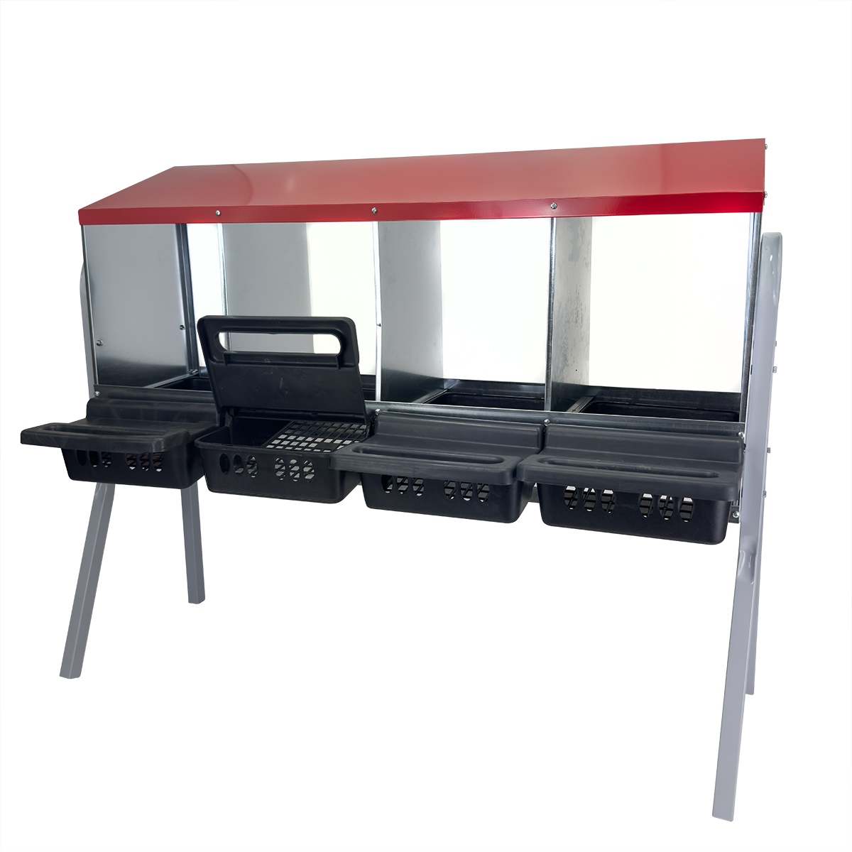 Гнездо для кур Acnplast 4-секционное на съемных металлических ножках: мобильность и комфорт для вашей птицы.