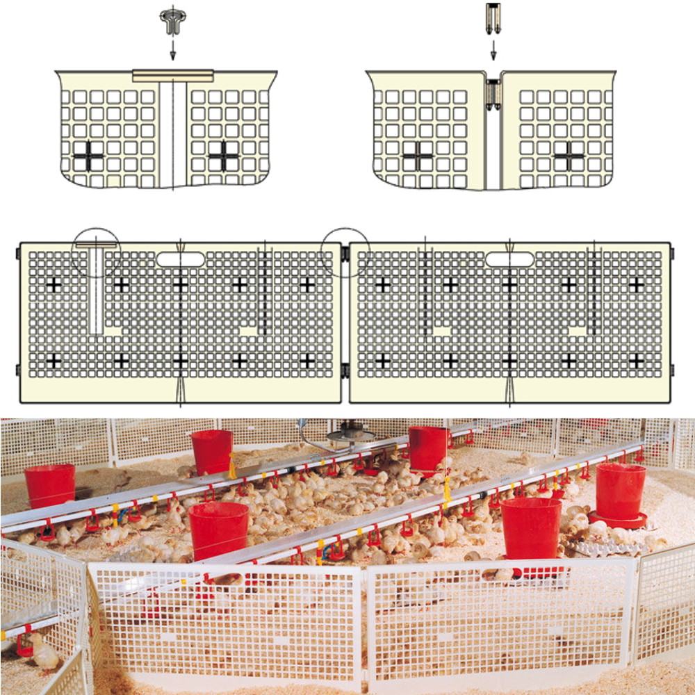Цыплята бройлеры за ограждением чувствуют себя комфортно и защищенно. Секции ограждения могут быть использованы многократно. Для соединения секций решетки между собой используйте специальные петли арт.4512-09 (продаются отдельно).