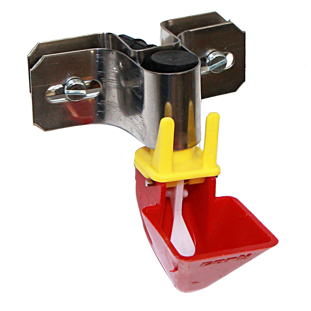 Крепится чашечная поилка, непосредственно на сетку клетки, металлическим креплением на винтах. Фиксируется стальными пластинами с внутренней и наружной стороны сетки, при помощи винта с гайкой.