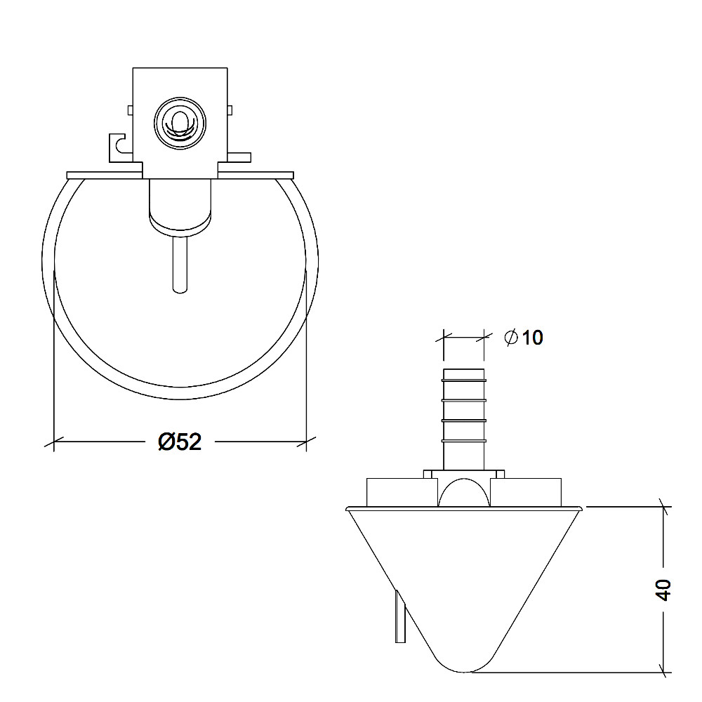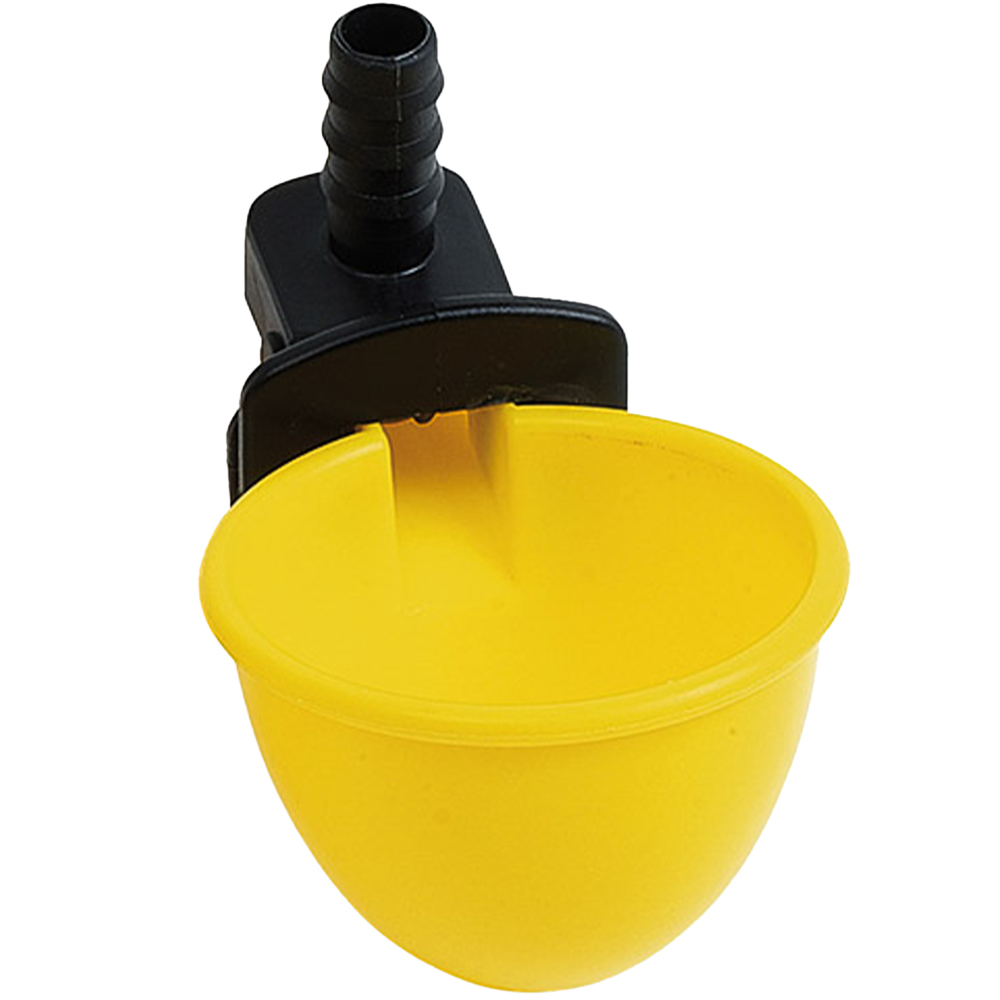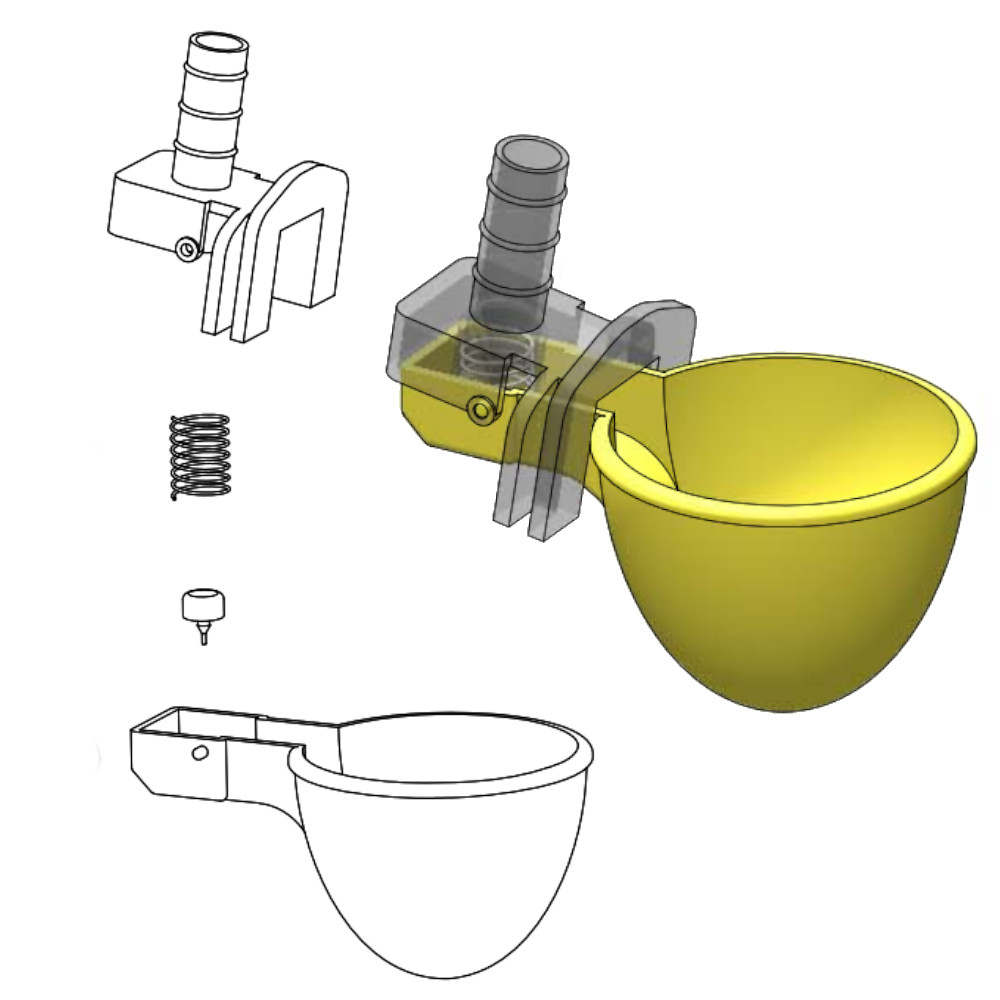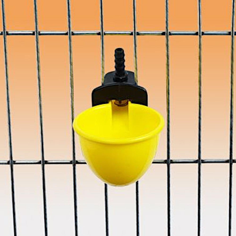 Чашечная поилка предназначена для кур, голубей, перепелов и другой птицы. Крепится на проволочную сетку при помощи боковых пластиковых прорезей. Поилка подсоединяется к емкости при помощи 10мм шланга. Поилка бесперебойно подает воду из емкости в чашечку по мере необходимости. Когда вода заканчивается, чашка приподнимается и открывает клапан. Вода плавно набирается и чашка под весом перекрывает подачу воды. Размеры: ⌀ - 50мм, h - 40мм