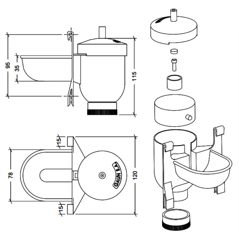 Чашечная автоматическая поилка для кроликов с чашкой из нержавеющей стали.