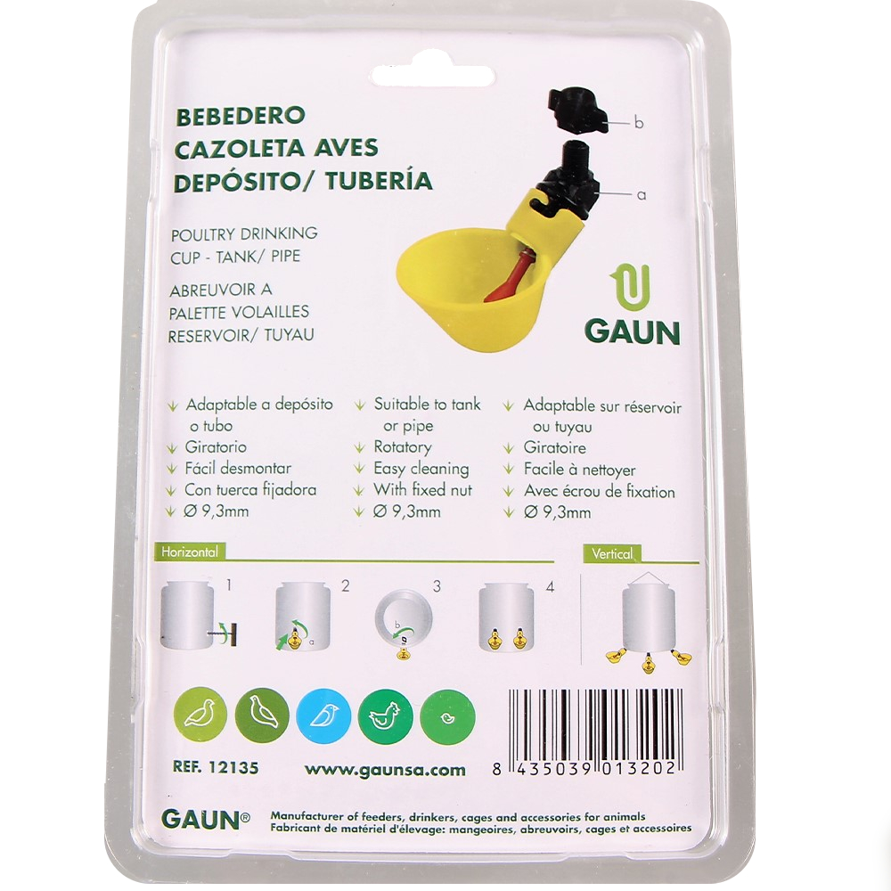 Набор из 2 поилок для мелкой сельскохозяйственной птицы. Предназначены для крепления к баку или к любой другой ёмкости. Специальный механизм поддерживает постоянный уровень жидкости в поилке, обеспечивая птиц чистой питьевой водой.