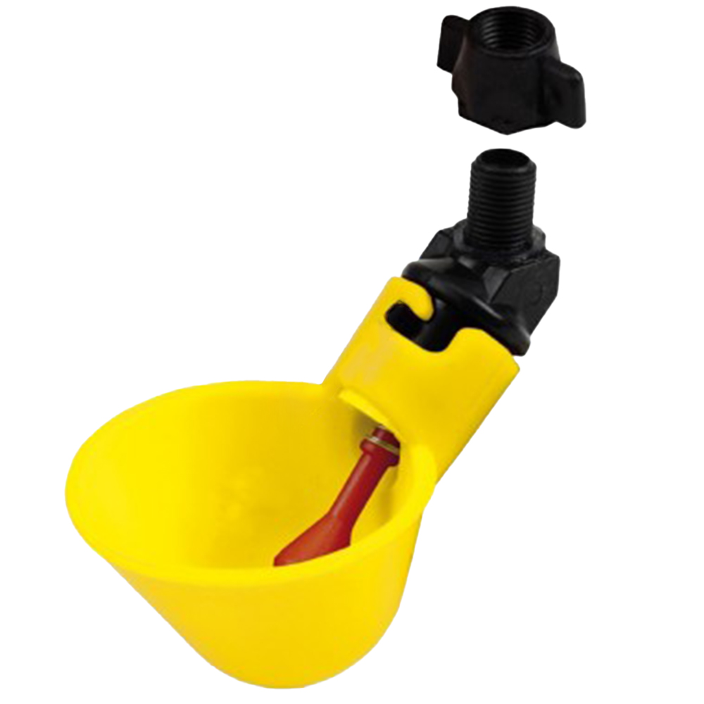 Принцип работы чашечной поилки заключается в том, что «язычок» поплавкового механизма по мере наполнения поилки поднимается до упора и перекрывает воду.