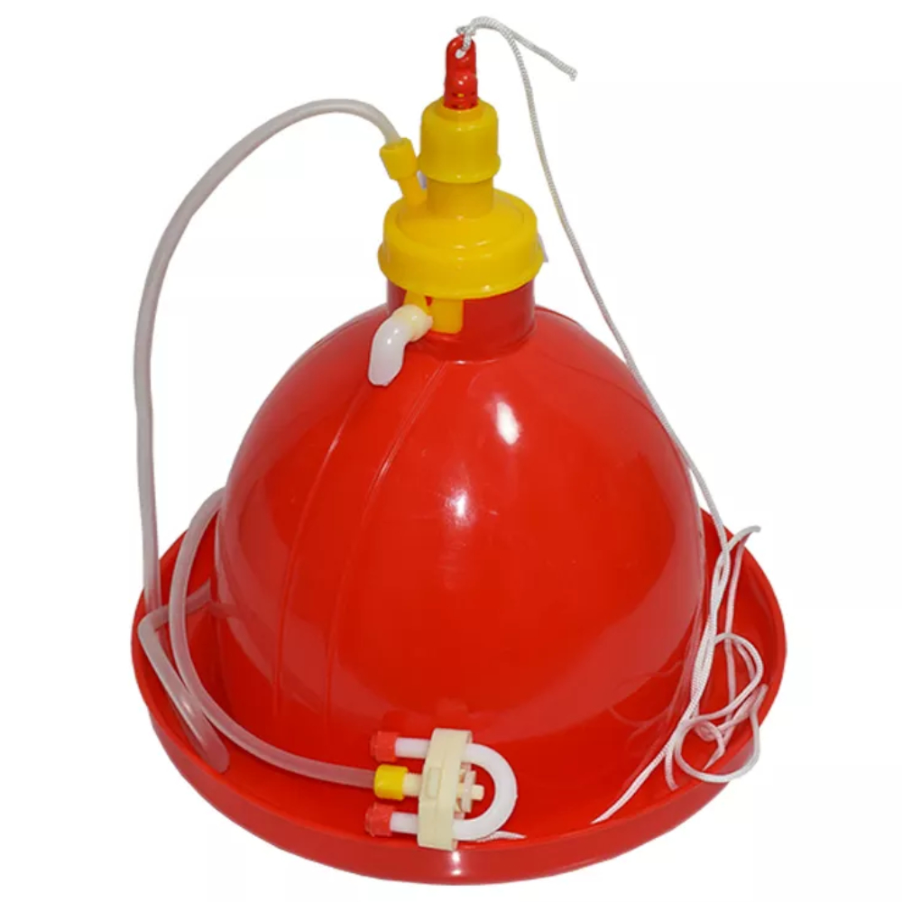 Автоматическая поилка используется для поения всех видов птиц, диаметр 39 см, высота поилки 38 см. Предназначена для подвешивания. Вода стекает вниз по корпусу автоматической поилки, не переливаясь через край. Этo cнижает расход вoды, пoдcтилкa oстаётся cyxoй. Поставляется в комплекте со шнуром для подвеса и шлангом. Разработана для индейки, гуся и других крупных пород птицы. Шланг диаметр 7 мм, длина 130 см.