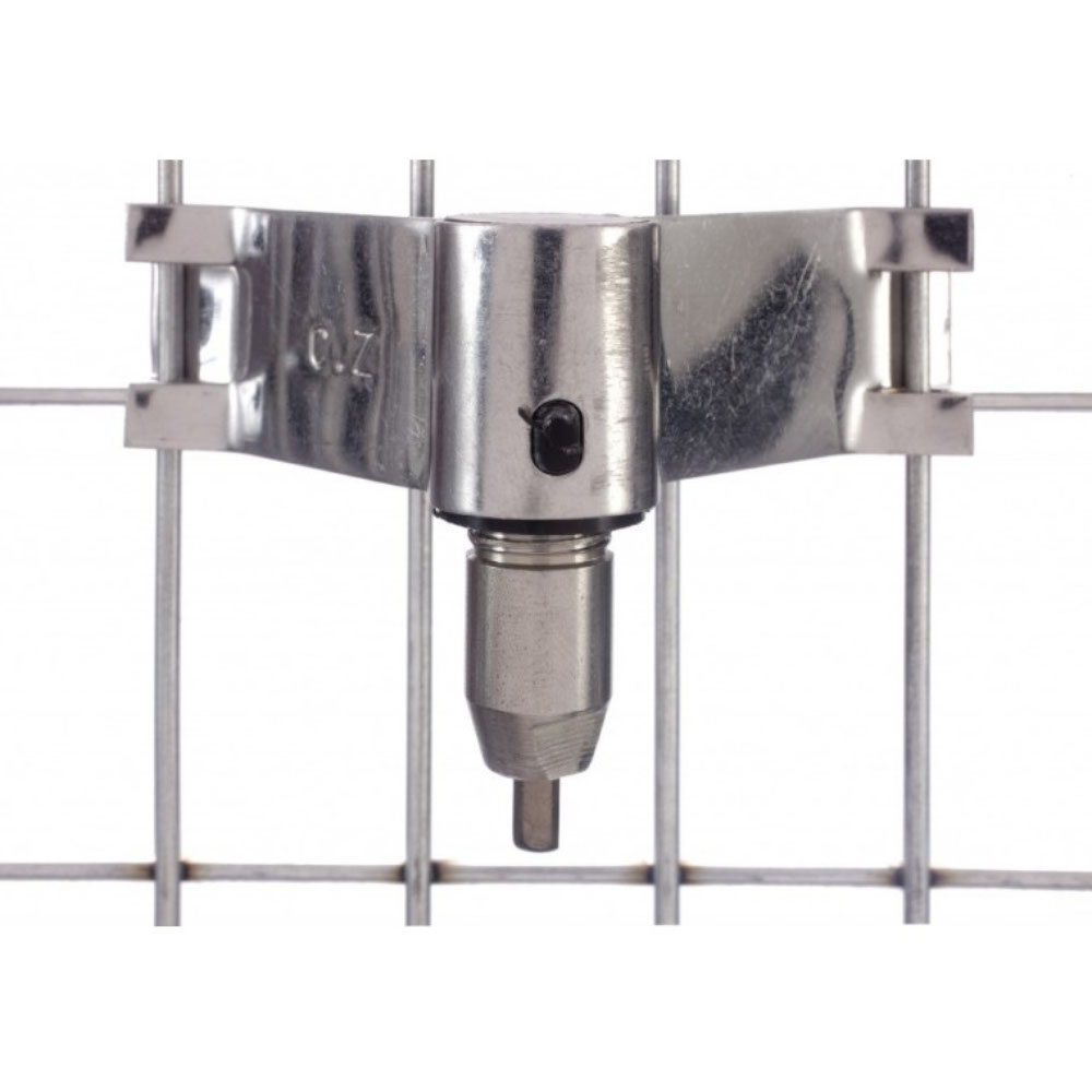 Поилка ниппельная для кур и кроликов из нержавеющей стали. Ниппель (180), через пластиковый переходник с насечками соединяется со шлангом, а крепится непосредственно на сетку клетки металлическим креплением с распорками.