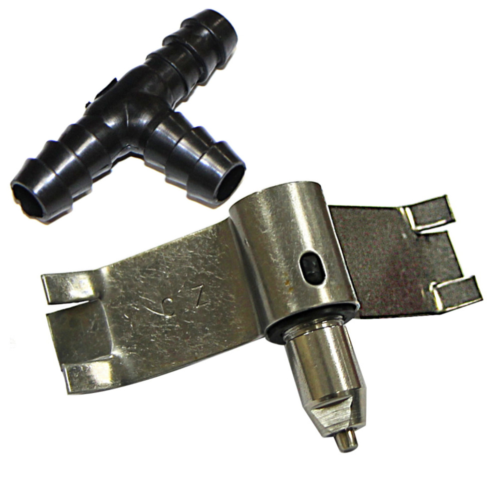 Поилка укомплектована пластиковым Т-образным соединением с насечками для разводки шлангов или мягких труб.