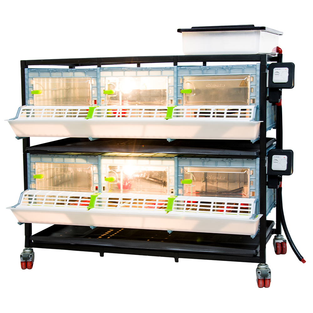 Брудер для цыплят CB25 состоит из 3 секций в 2 яруса, изготовлен из 100% перерабатываемого пластика и подходит для всех видов птенцов, в том числе и для крупных. Высота яруса 25 см.
