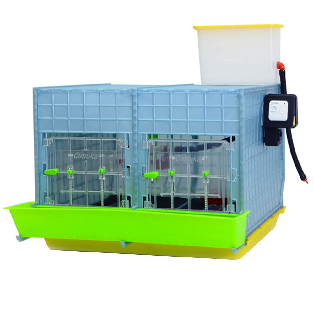 - съемными кормушками, системой ниппельного поения с баком для воды,