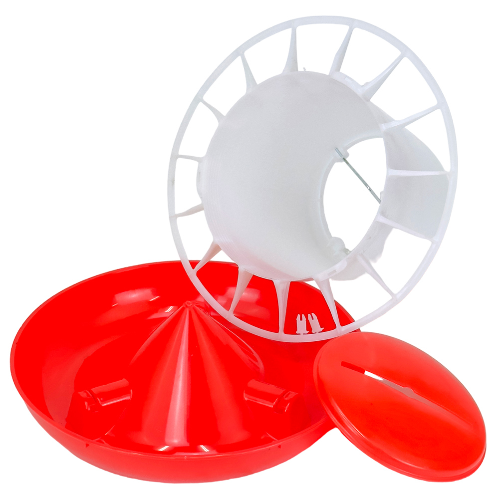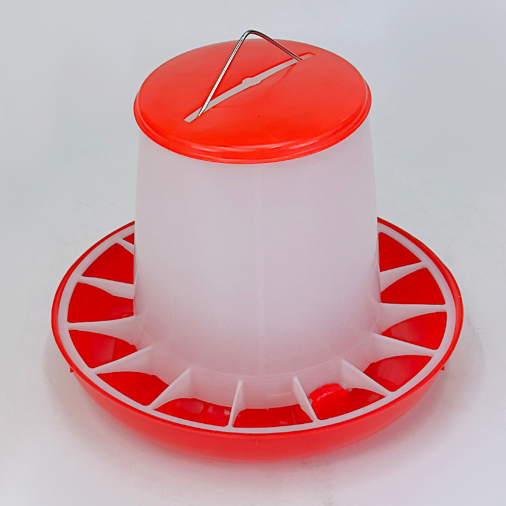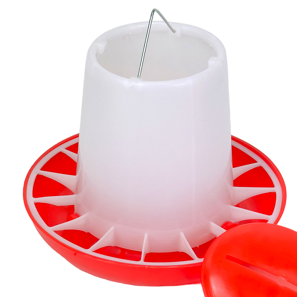 Бункерная кормушка рассчитана на 9 кг комбикорма, изготовлена из прочного пластика и имеет разделительную решетку. Разделительная решетка защищает корм от загрязнения. Прозрачный материал кормушки позволяет контролировать запас корма. Подвесная кормушка для кур подходит для использования в курятнике или во дворе.