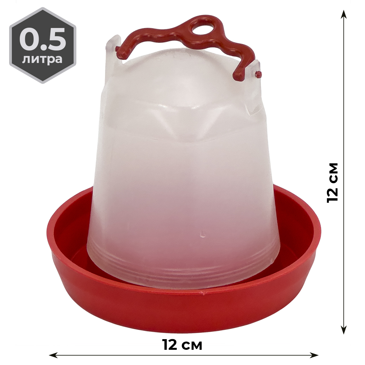 Вакуумная мини-поилка для цыплят, кур и других сельскохозяйственных птиц объемом 0,5 л с ручкой - это удобное устройство, предназначено для обеспечения домашней птицы свежей и чистой водой.