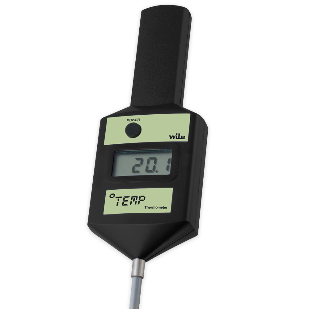 Самый распространённый прибор для измерения температуры, используемый в сельском хозяйстве. Зонд длиной 1,5 м, изготовлен из стекловолокна. Диапазон измерения температуры от -15 до +70°C. Измерение происходит непосредственно на наконечнике датчика.