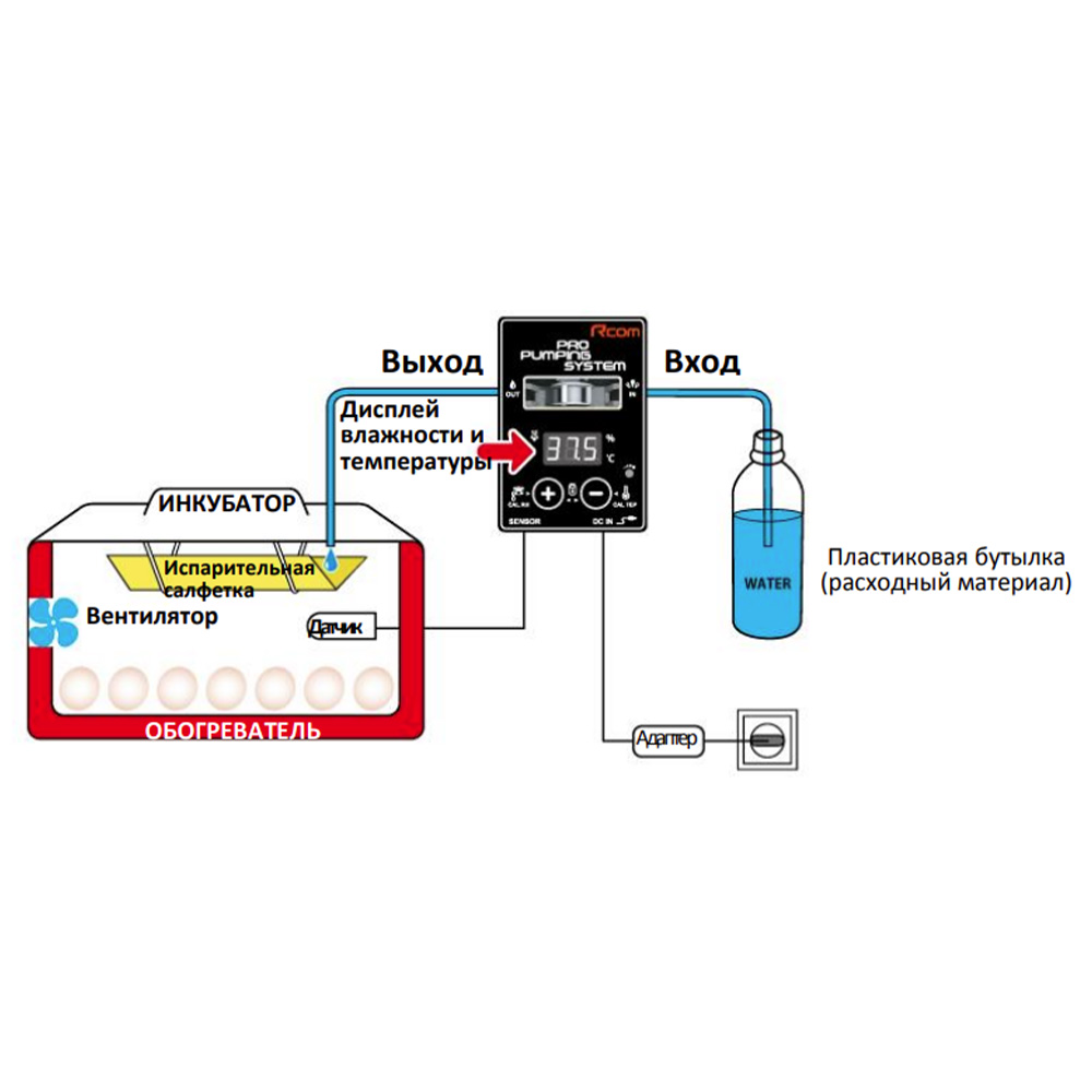 Помпа может использоваться в инкубаторах без функции контроля влажности.