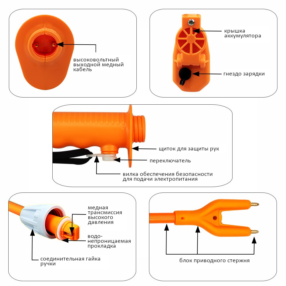 Тип электрошокера для скота: перезаряжаемая аккумуляторная батарея (4000 мА/ч) или сухозаряженная аккумуляторная батарея (тип С). Зарядное устройство в комплекте.