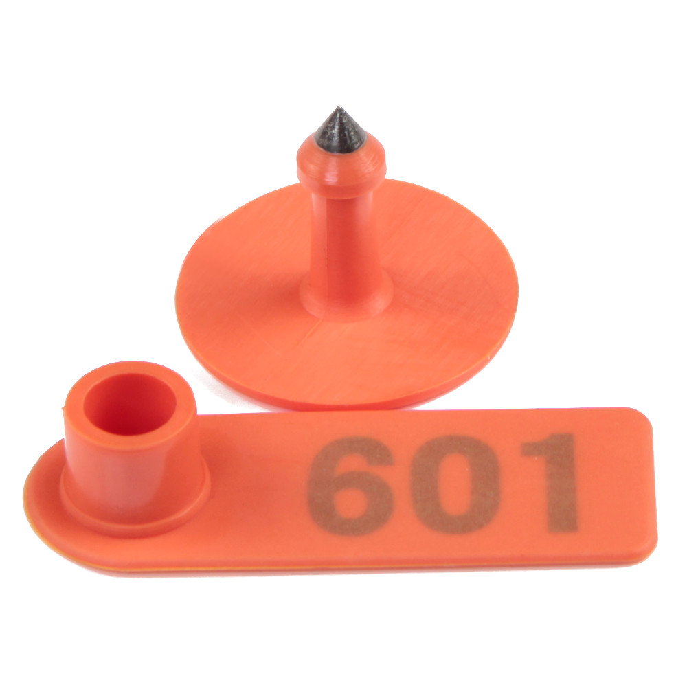 Оранжевые двойные бирки для сельскохозяйственных животных, упаковка 100 шт. с номерами. Номера 001-100