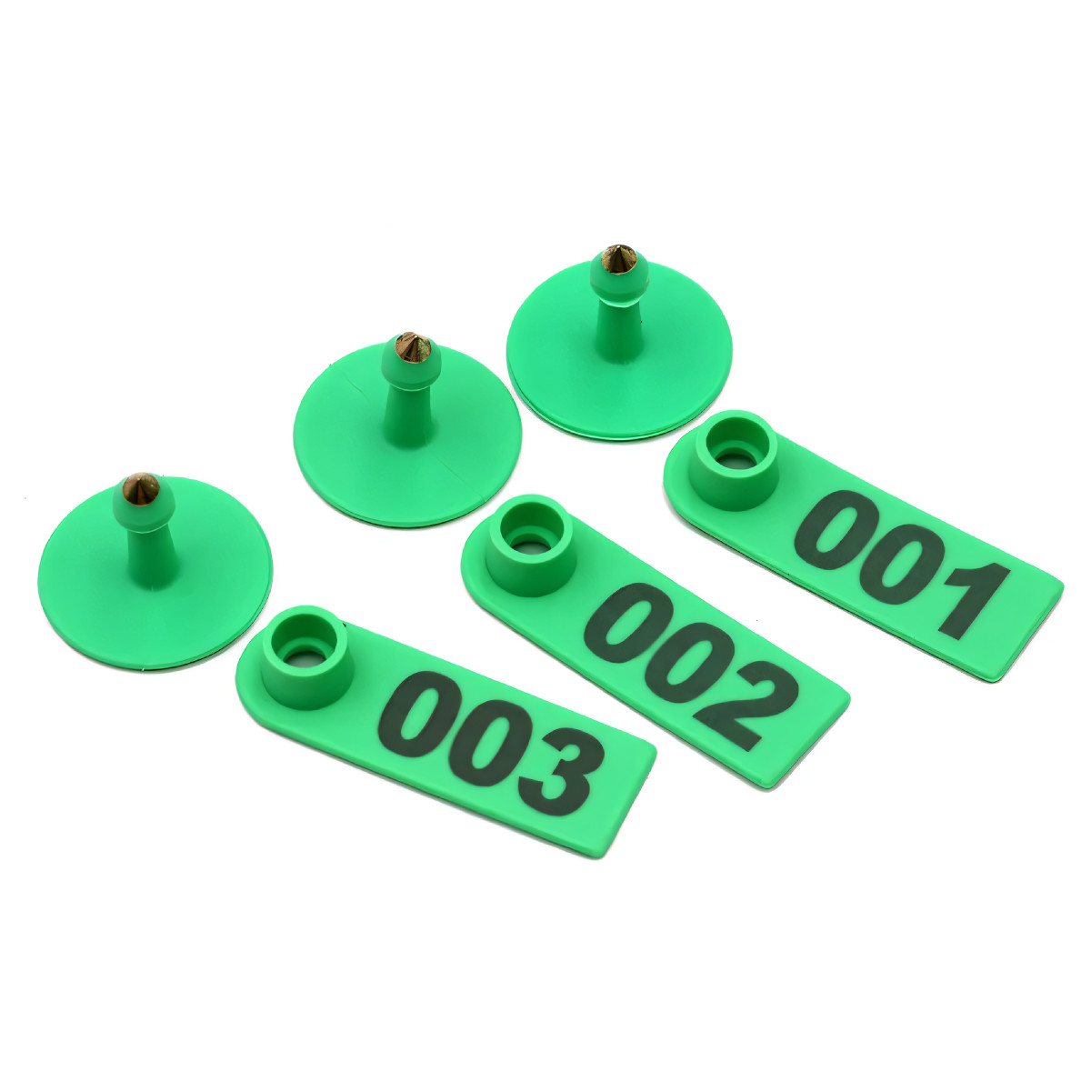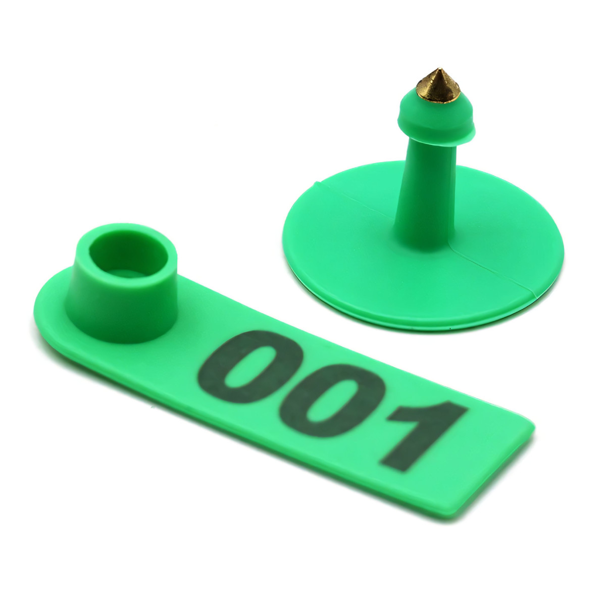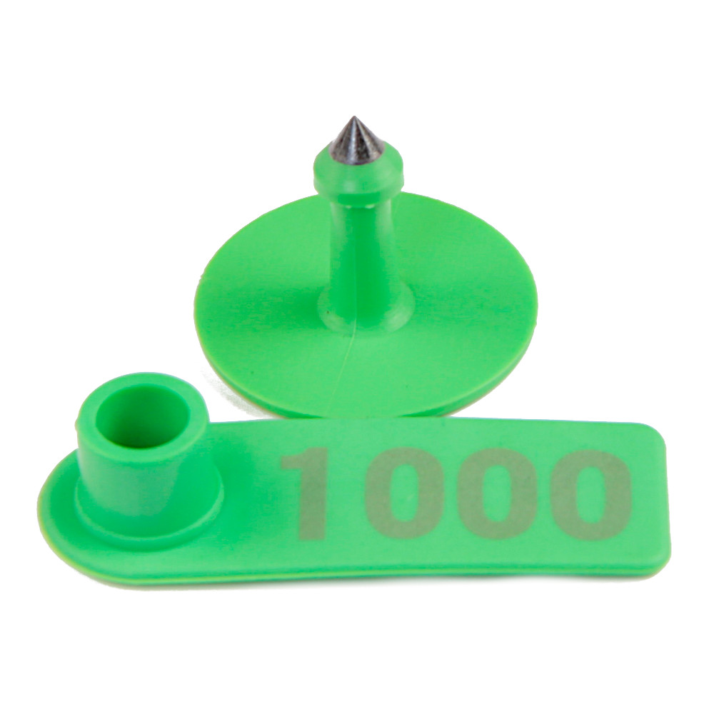 Зелёные двойные бирки для сельскохозяйственных животных, упаковка 100 шт. с номерами. Номера 001-100.