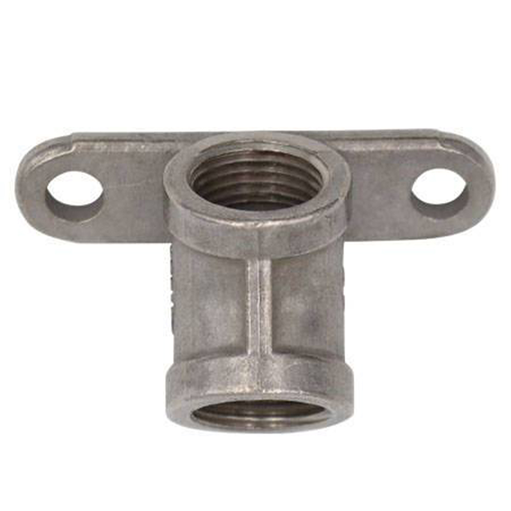 Крепление настенное для ниппельной поилки, угол наклона 45 градусов, из нержавеющей стали. Нижнее ответвление с внутренней резьбой диаметром 1/2 дюйма, верхнее 1/2 дюйма.