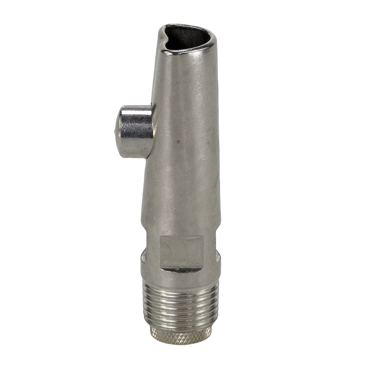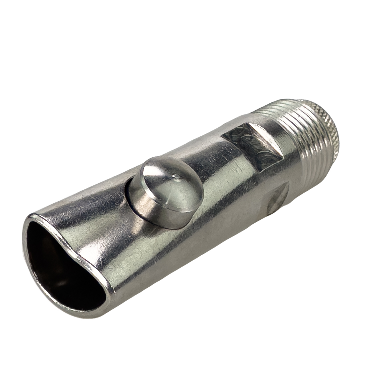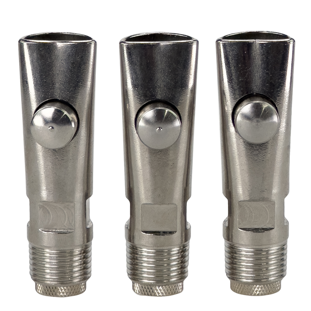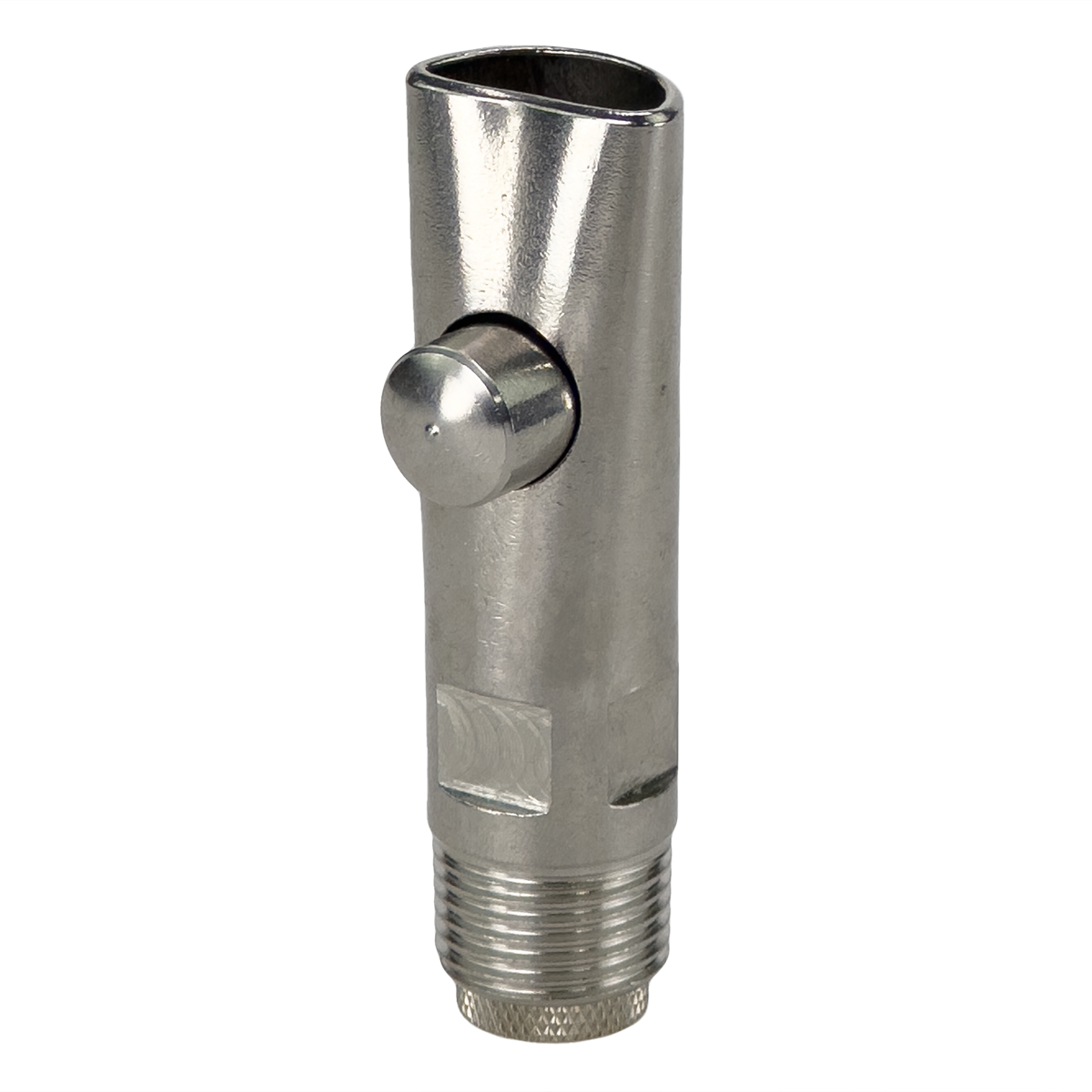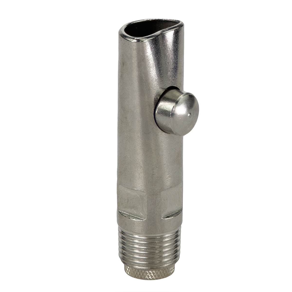 Поилка кнопочная из высококачественной нержавеющей стали с регулируемым клапаном производительности, для свиноматок и хряков 105мм, диаметр 1/2". Соединение с трубой – резьба 1/2".