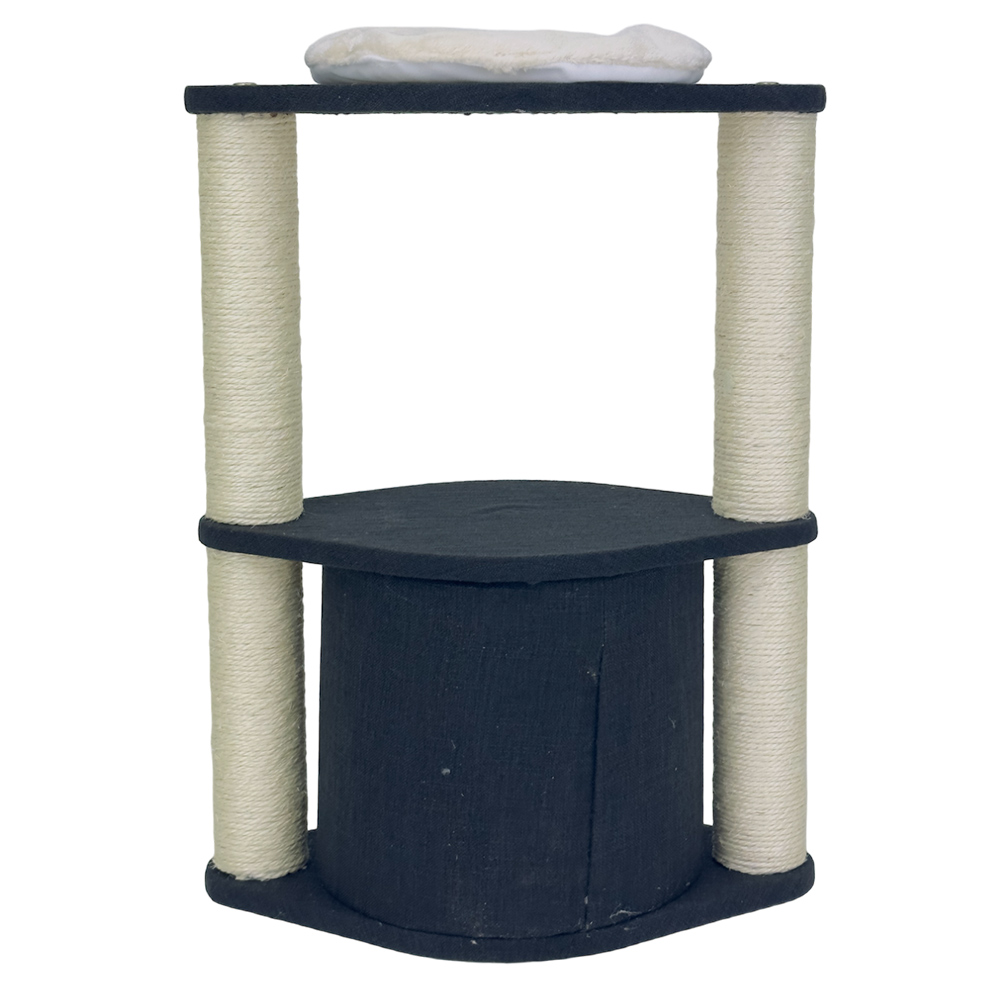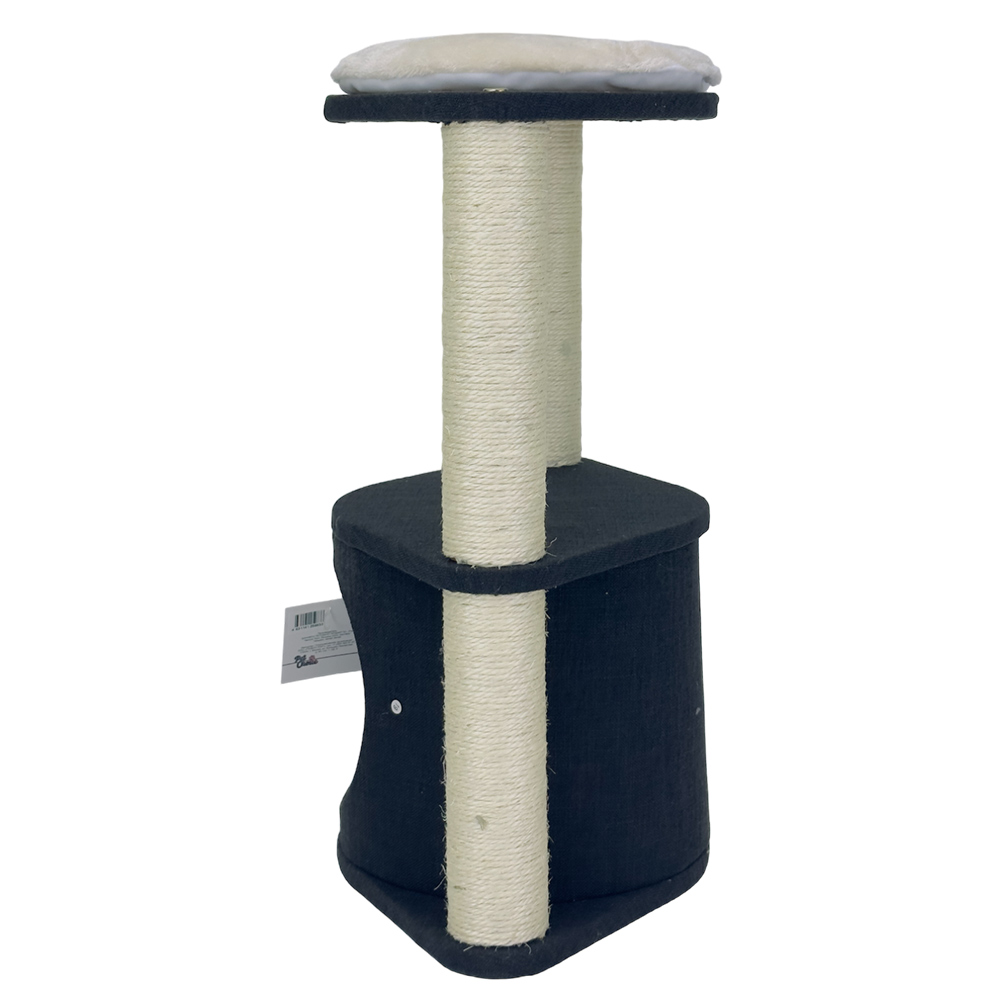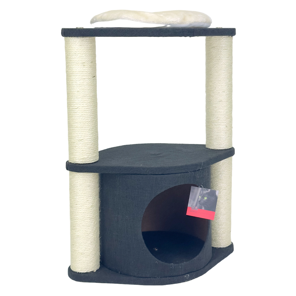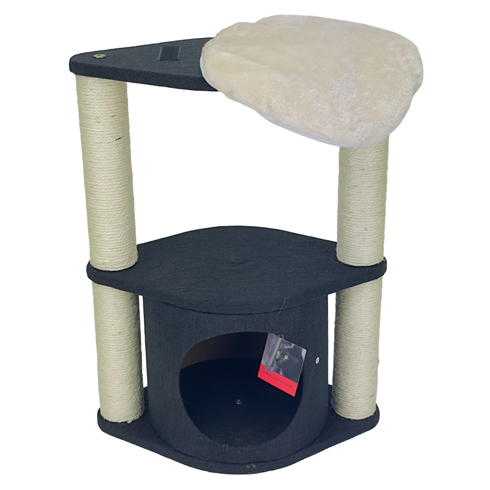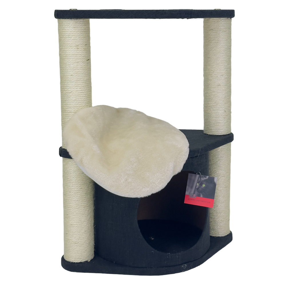Оригинальная форма когтеточки для кошки украсит собой любой интерьер. Выполнена в черно-белом цвете. Маленький домик, расположенный снизу, создает ощущение защищенности для питомца. Широкое основание не даст питомцу опрокинуть когтеточку, что делает ее максимально безопасной. В комплекте мягкая подушка из плюша.