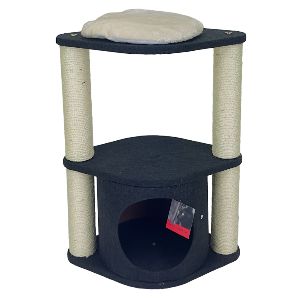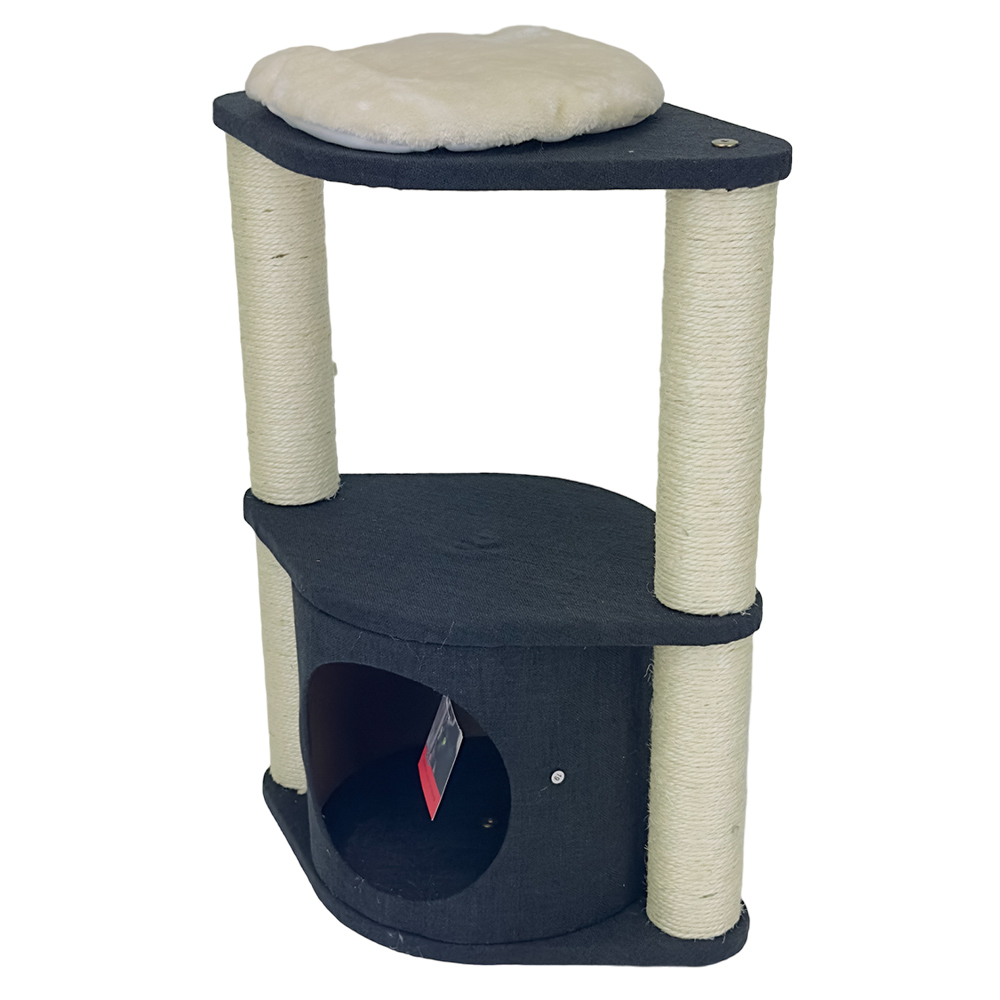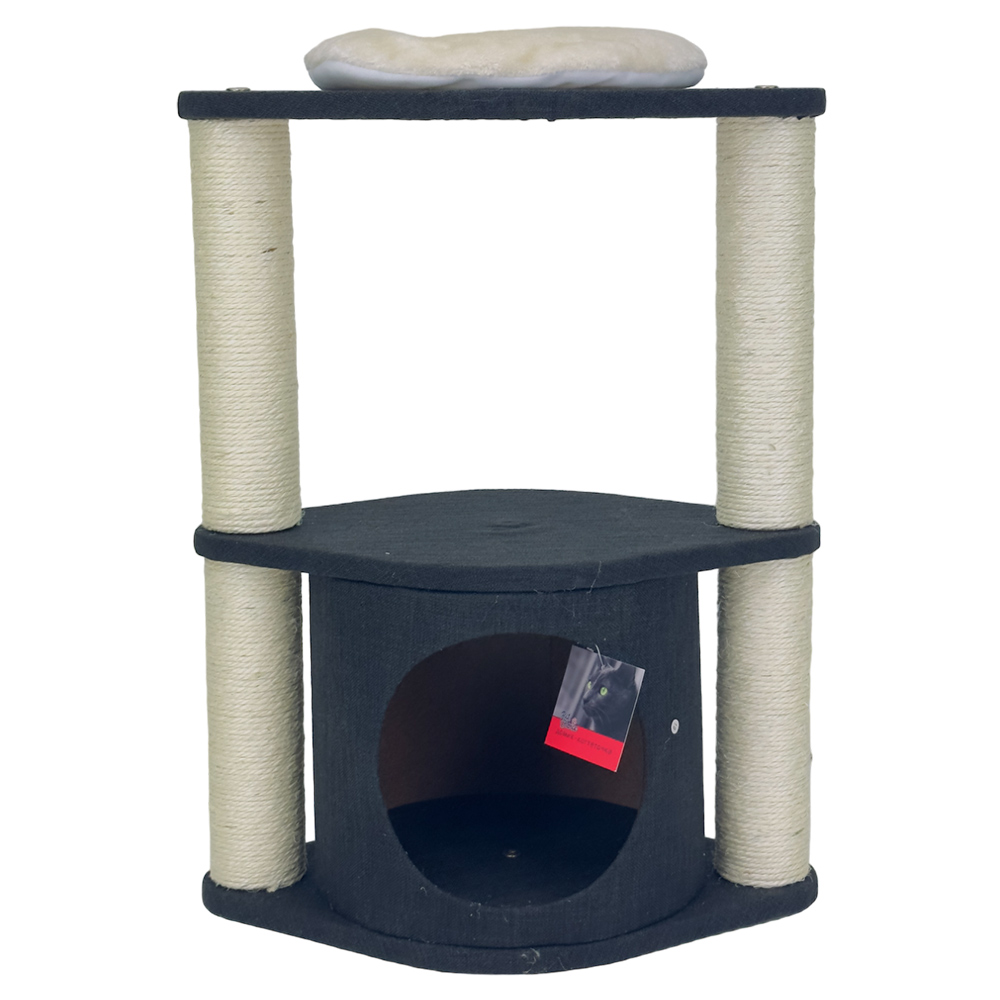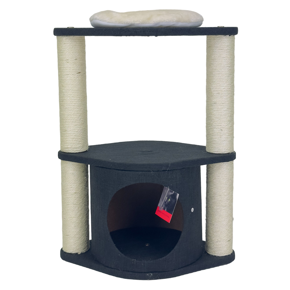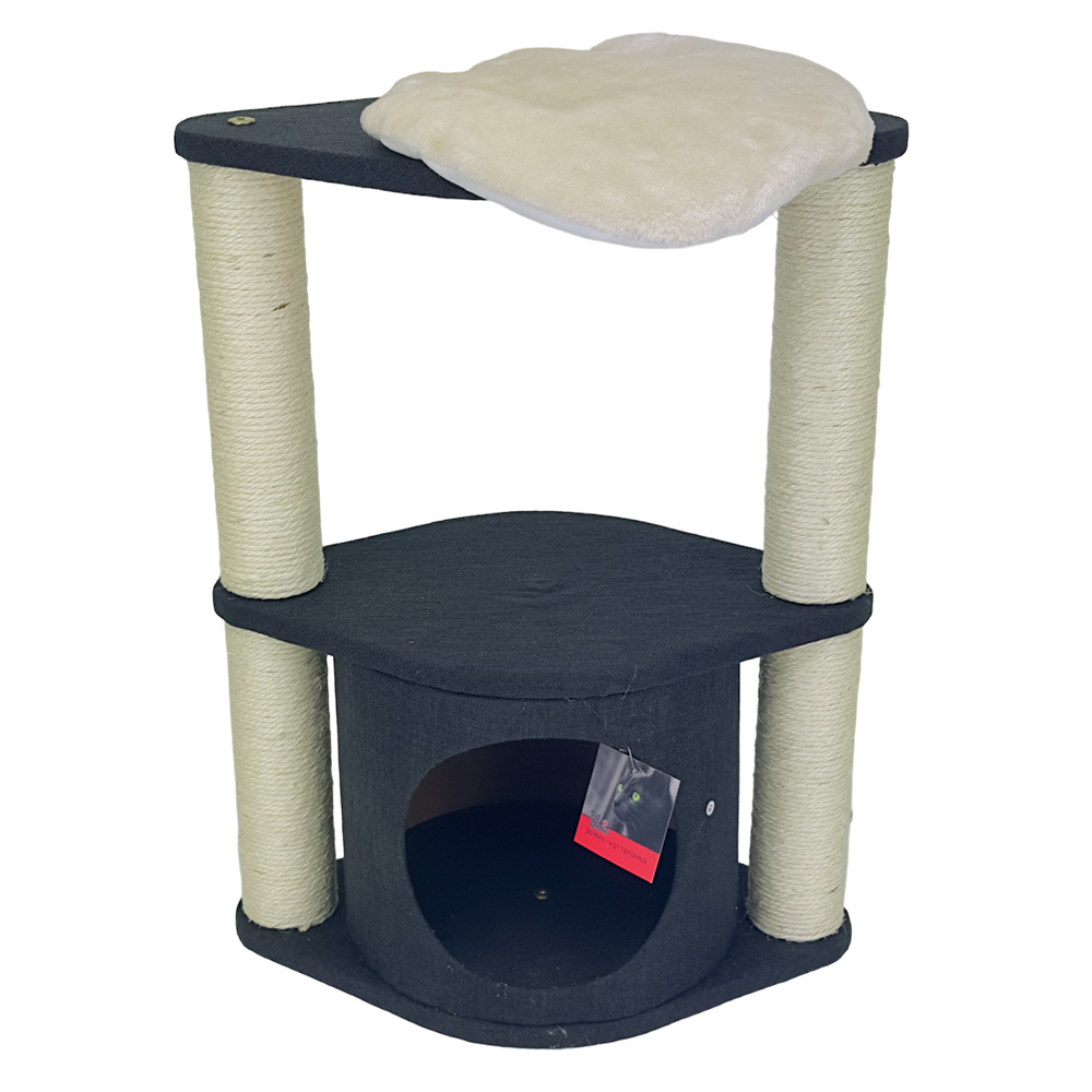 Оригинальная форма когтеточки для кошки украсит собой любой интерьер. Выполнена в черно-белом цвете. Маленький домик, расположенный снизу, создает ощущение защищенности для питомца. Широкое основание не даст питомцу опрокинуть когтеточку, что делает ее максимально безопасной. В комплекте мягкая подушка из плюша.