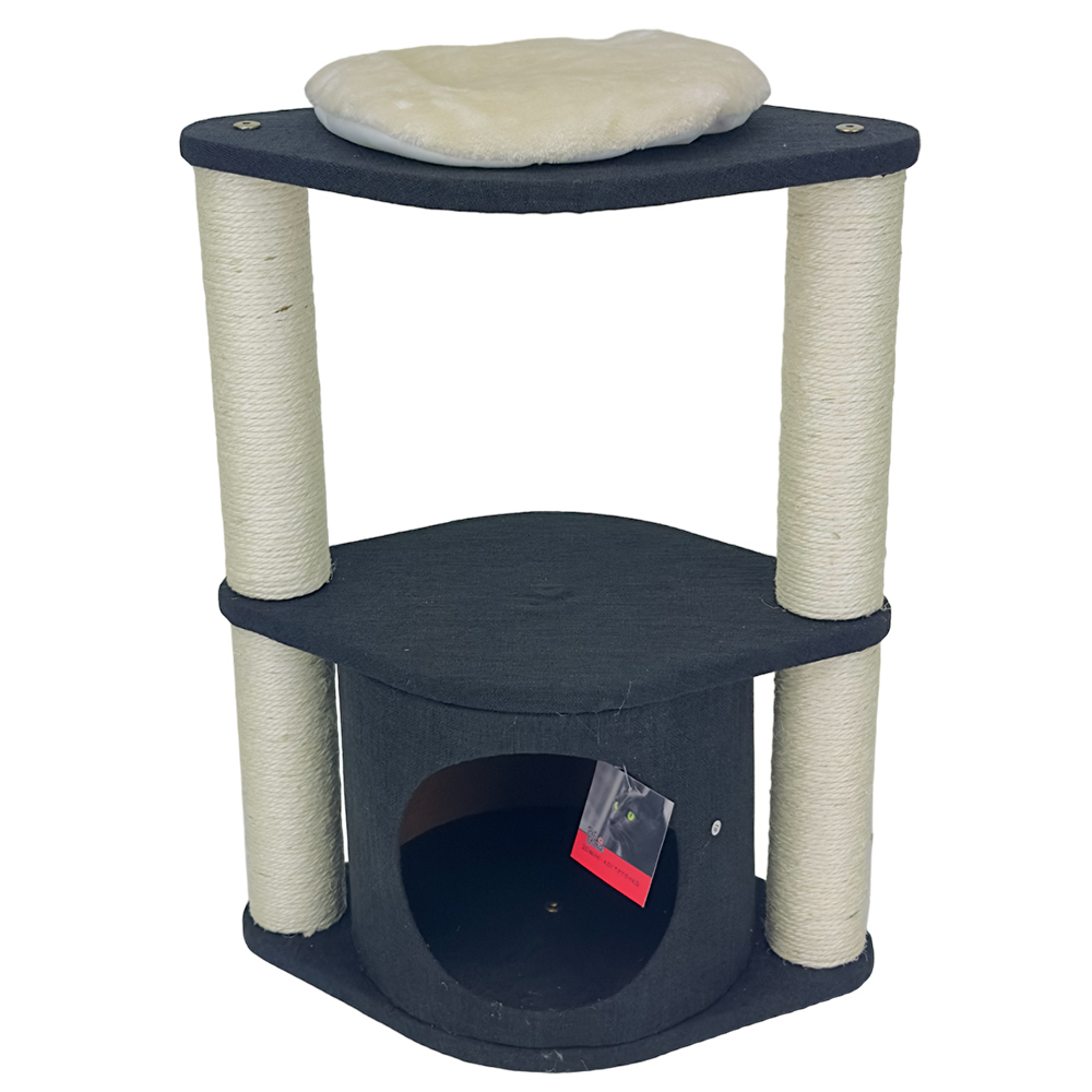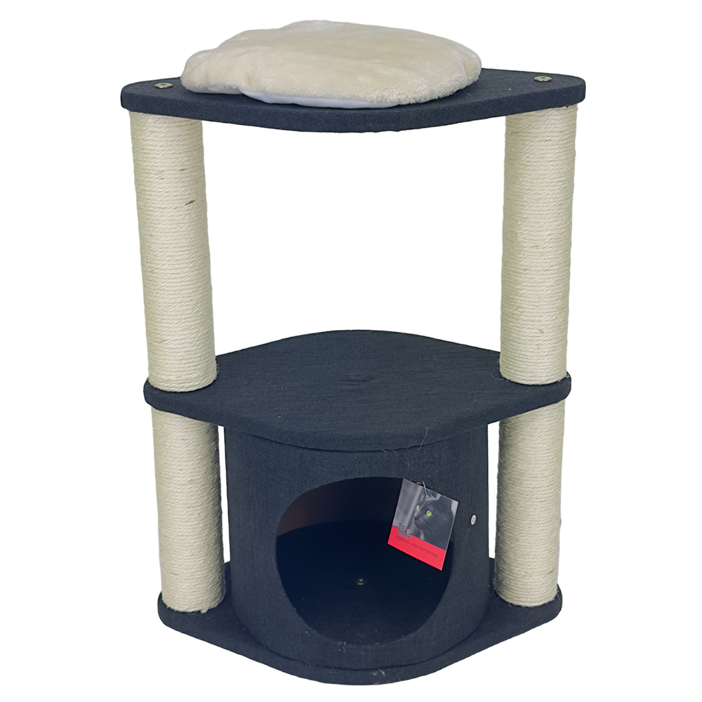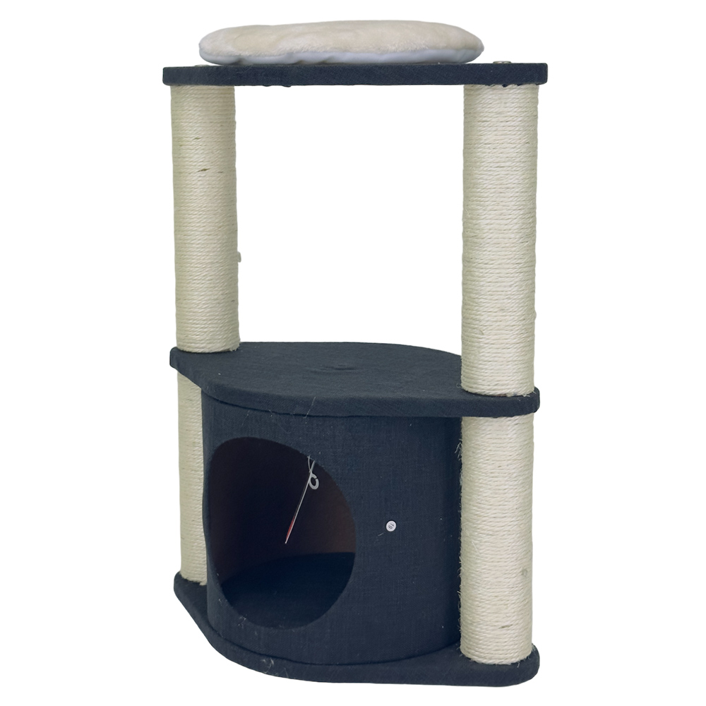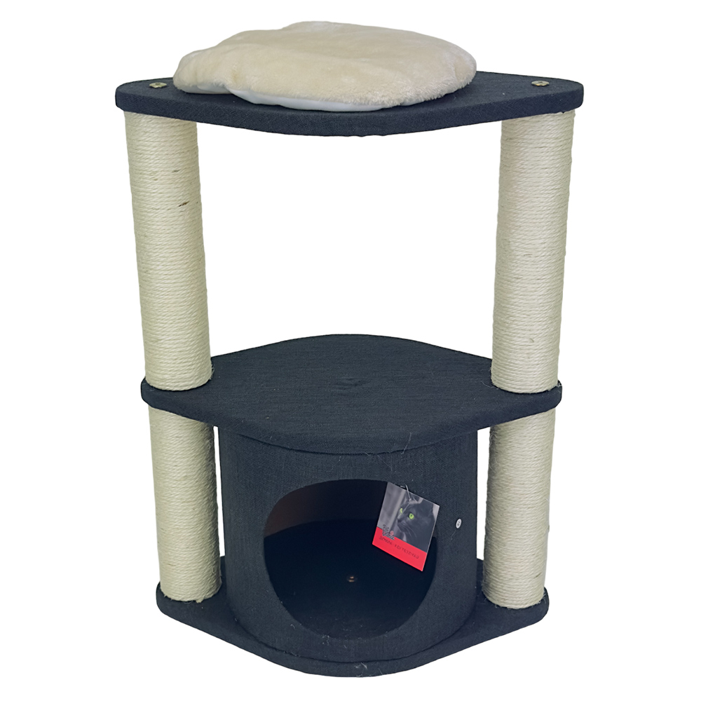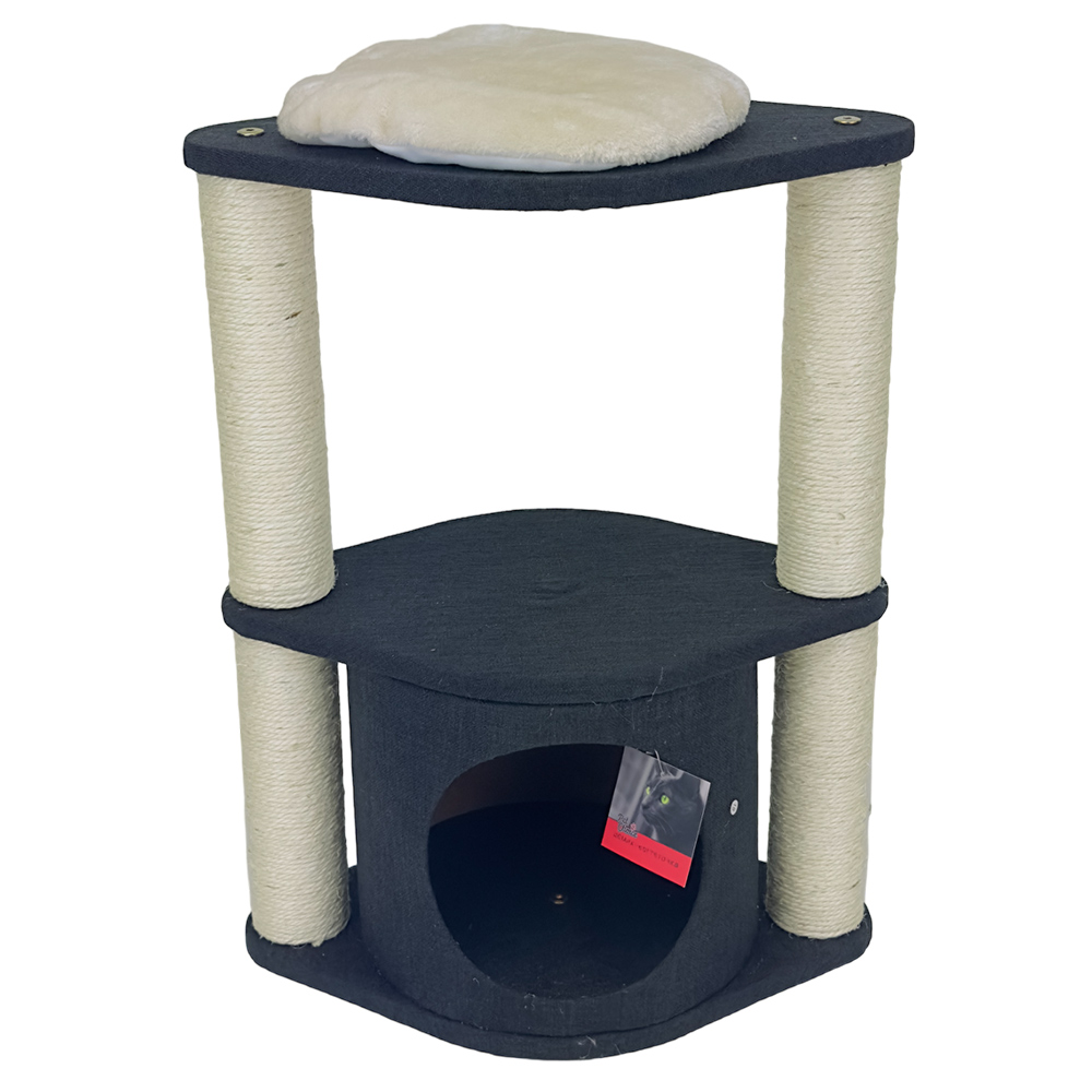 Оригинальная форма когтеточки для кошки украсит собой любой интерьер. Выполнена в черно-белом цвете. Маленький домик, расположенный снизу, создает ощущение защищенности для питомца. Широкое основание не даст питомцу опрокинуть когтеточку, что делает ее максимально безопасной. В комплекте мягкая подушка из плюша.