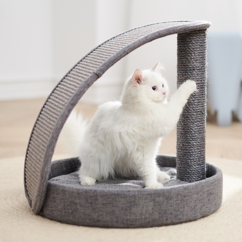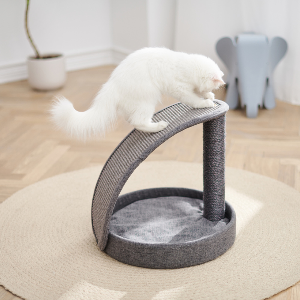 Многофункциональная когтеточка-лежак с высокой дугой. Благодаря сизалевому покрытию, питомец сможет содержать коготки в отличной форме. Поможет хозяевам уберечь мебель и обои от повреждений.