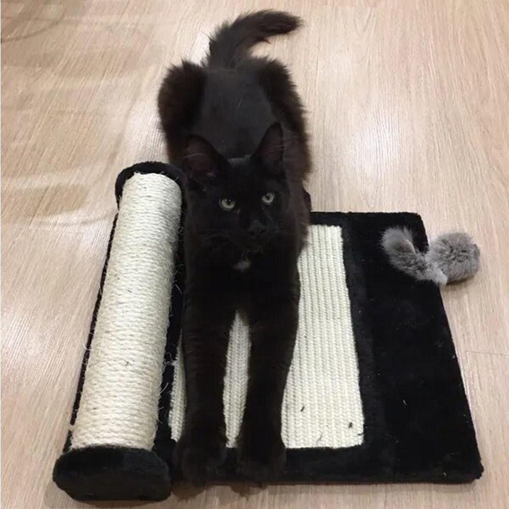 Коврик-когтеточка с размерами 36х42х24 см изготовлен из прочных сизалевых волокон. Коврик утяжеленный, остается на одном месте. Крутящийся ролик для игры займет питомца на долгое время. Когтеточка снижает вероятность возникновения стресса у животного.