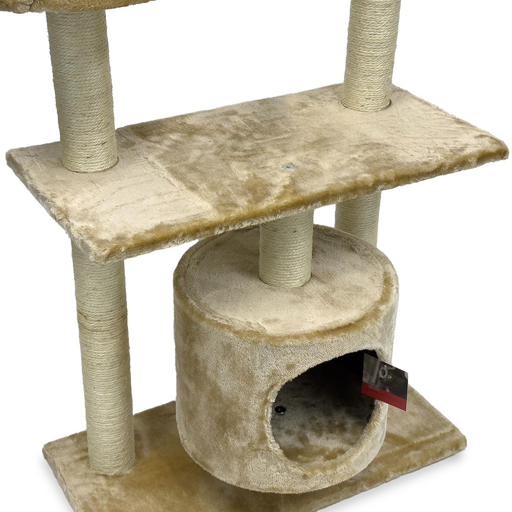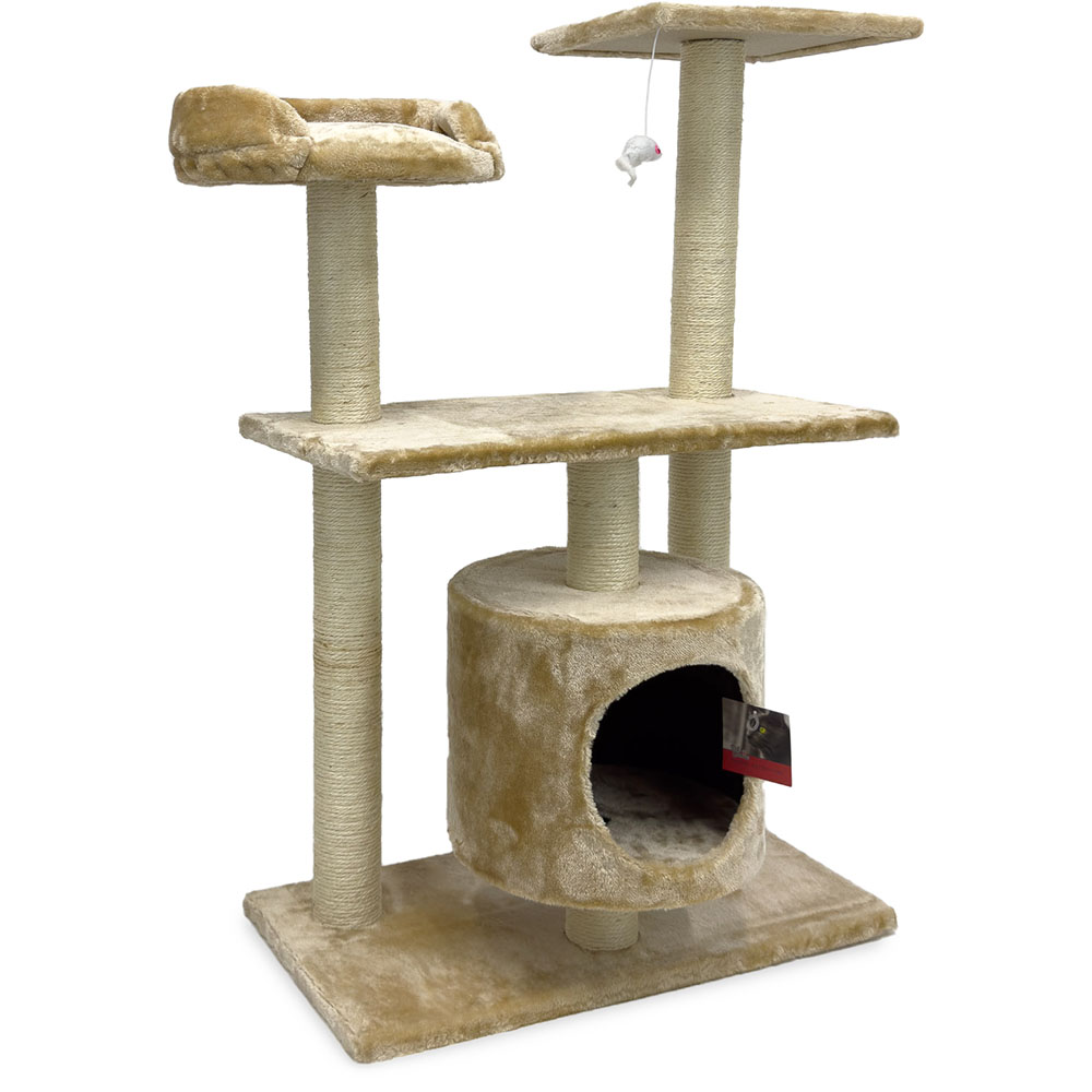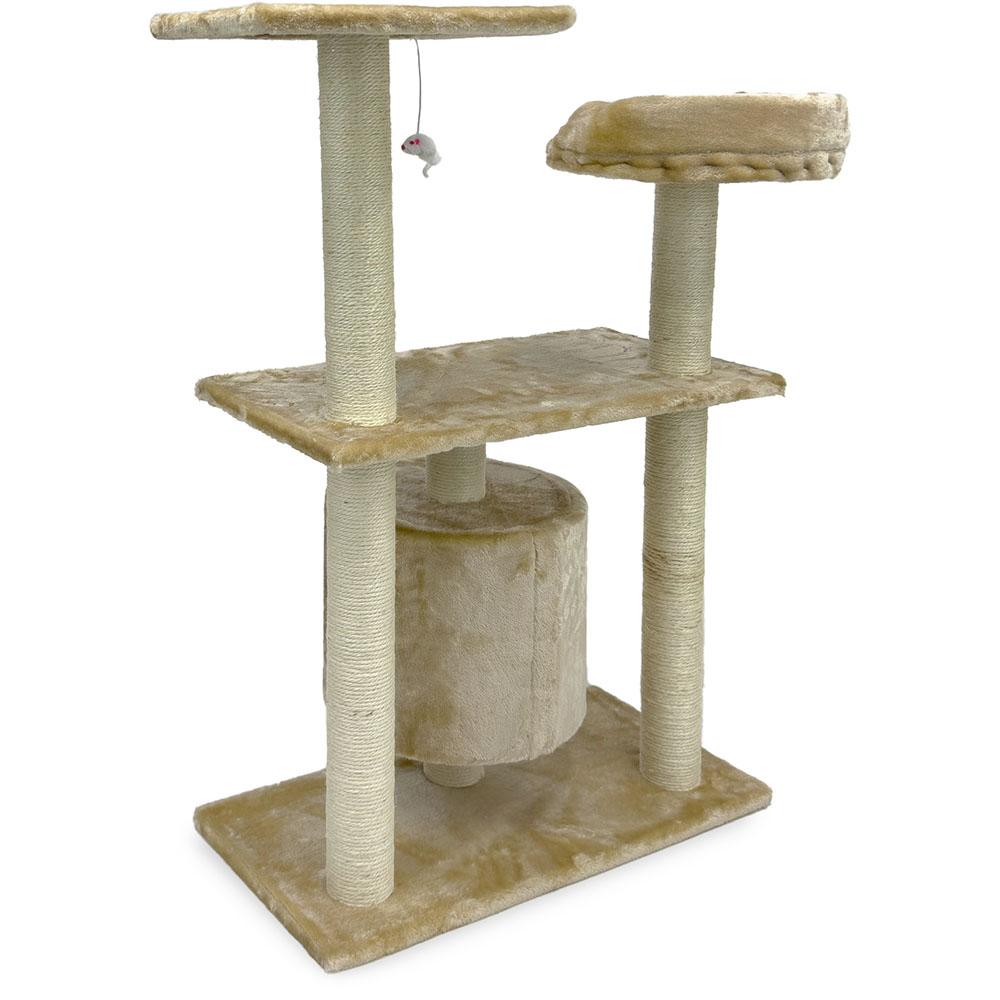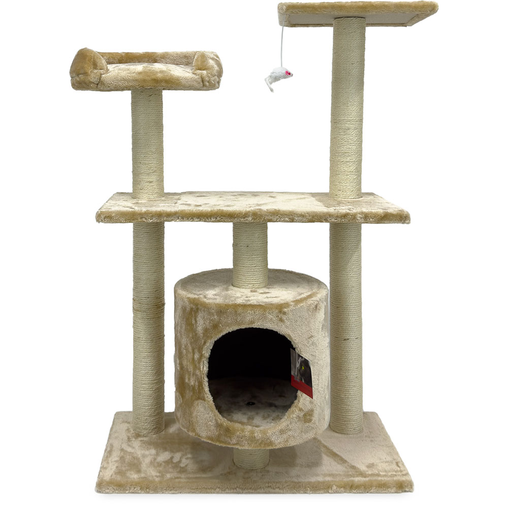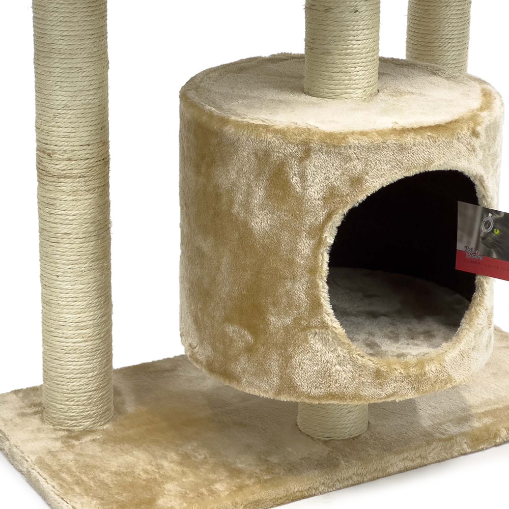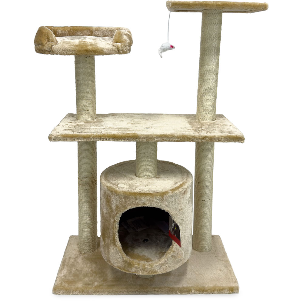 Игровая когтеточка-комплекс для кошек в бежевом цвете станет отличным выбором для времяпрепровождения вашего питомца. В основании расположен уютный домик, который представляет собой удобное место для сна, где ваша кошка будет чувствовать себя защищено. Три разноуровневые площадки - это прекрасная возможность для кошки проявить свою ловкость и активность. Подвесная игрушка сделает жизнь кота ещё интереснее.