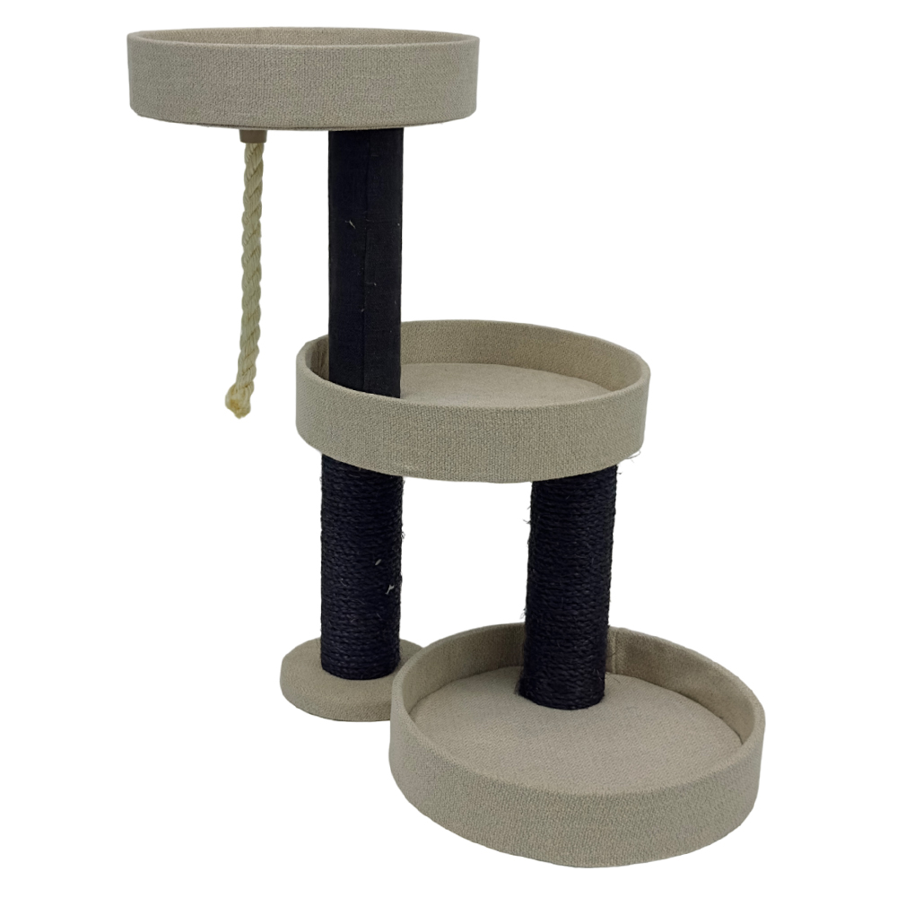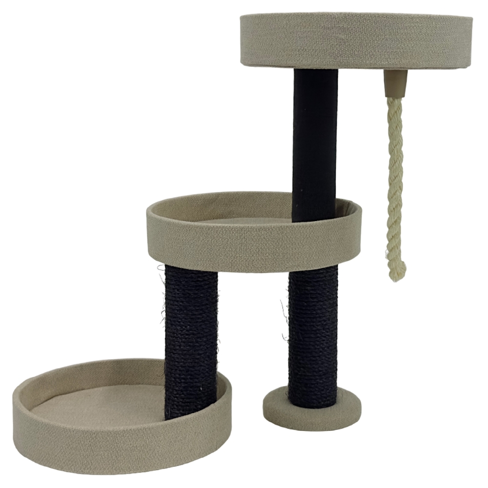Когтеточка-комплекс, которая имеет три уровня, обеспечит вашему любимцу полноценную игру и проявление активности, а также послужит зоной отдыха. Два разноуровневых столбика, покрытые сизалем (5.6 мм) - это прекрасная возможность для питомца стачивать когти. Это также поможет сохранить мебель и ковры в целостности.