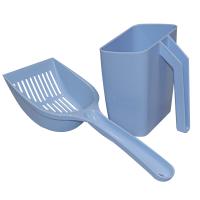 Набор из двух голубых совков для уборки кошачьего туалета Catidea. Один - обычный с прорезями, 11х6х35 см, второй - закрытый совок в форме стакана 14х14х16 см. Изготовлены из качественного пластика голубого цвета. Оба совка используются для удаления комков и чистки туалета, а совок в форме стакана может служить также подставкой для второго, при хранении.
