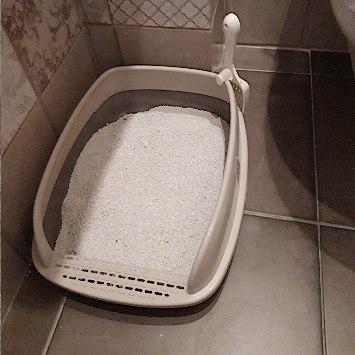 - Прочная решетка по переднему краю бортика предназначена для очистки кошачьих лапок от прилипших частичек наполнителя.