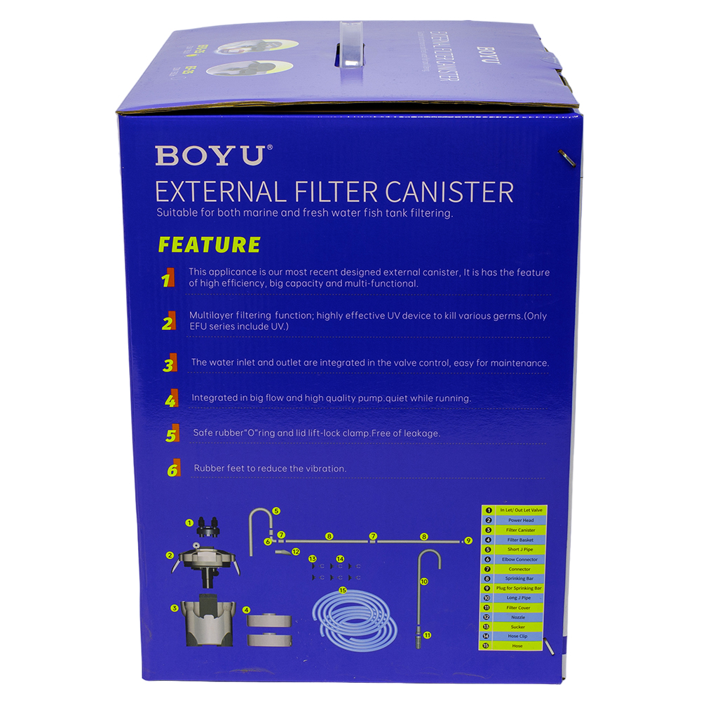 Внешний фильтр Boyu EFU-25 является канистровым фильтром для аквариума. Он отличается высокой эффективностью, большой емкостью и многофункциональностью.