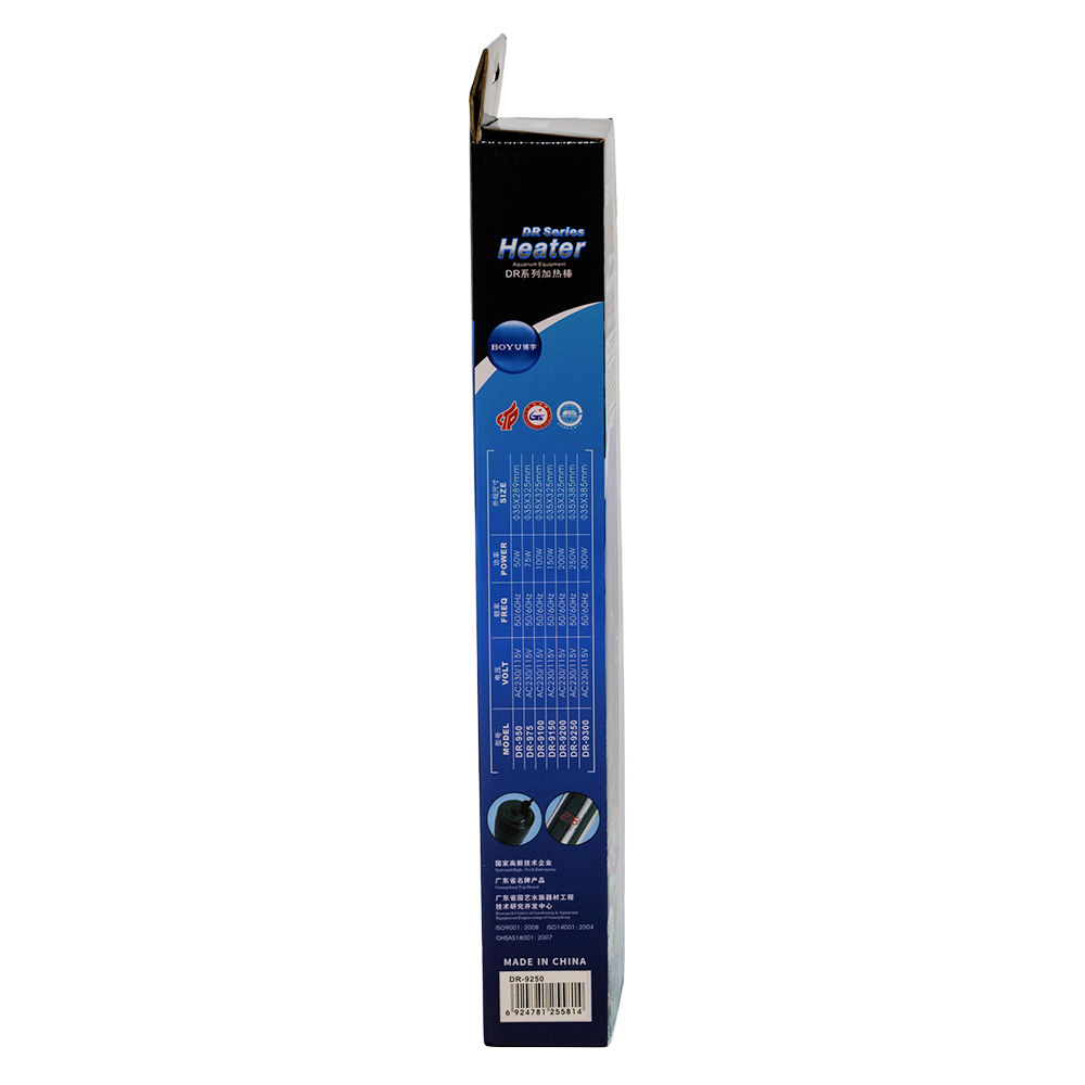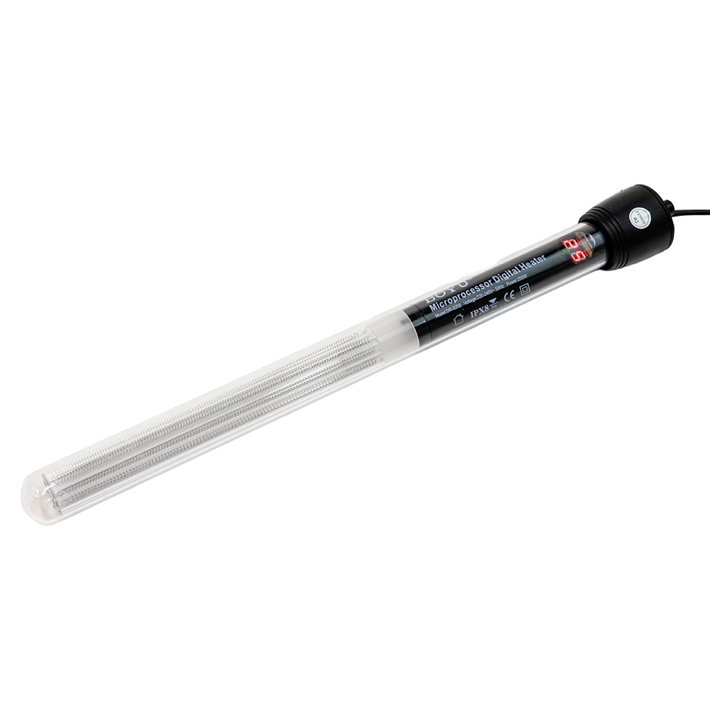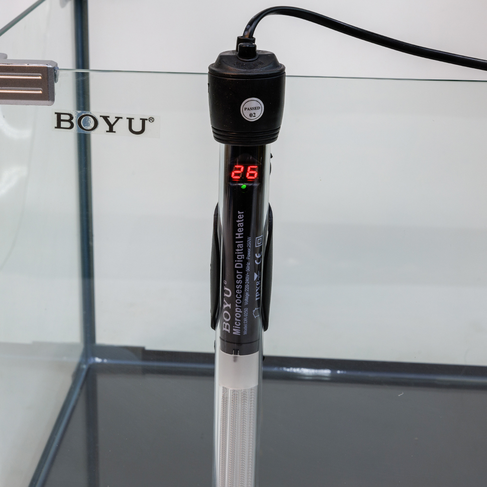 Нагреватель Boyu DR-9250 класса премиум с микропроцессором, терморегулятором и LED индикацией имеет дисплей температуры. Кварцевое стекло. Защита от перегрева. Подходит для морской и пресной воды. Для аквариумов 250-300 л.