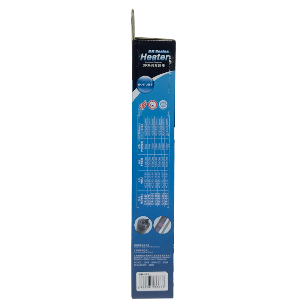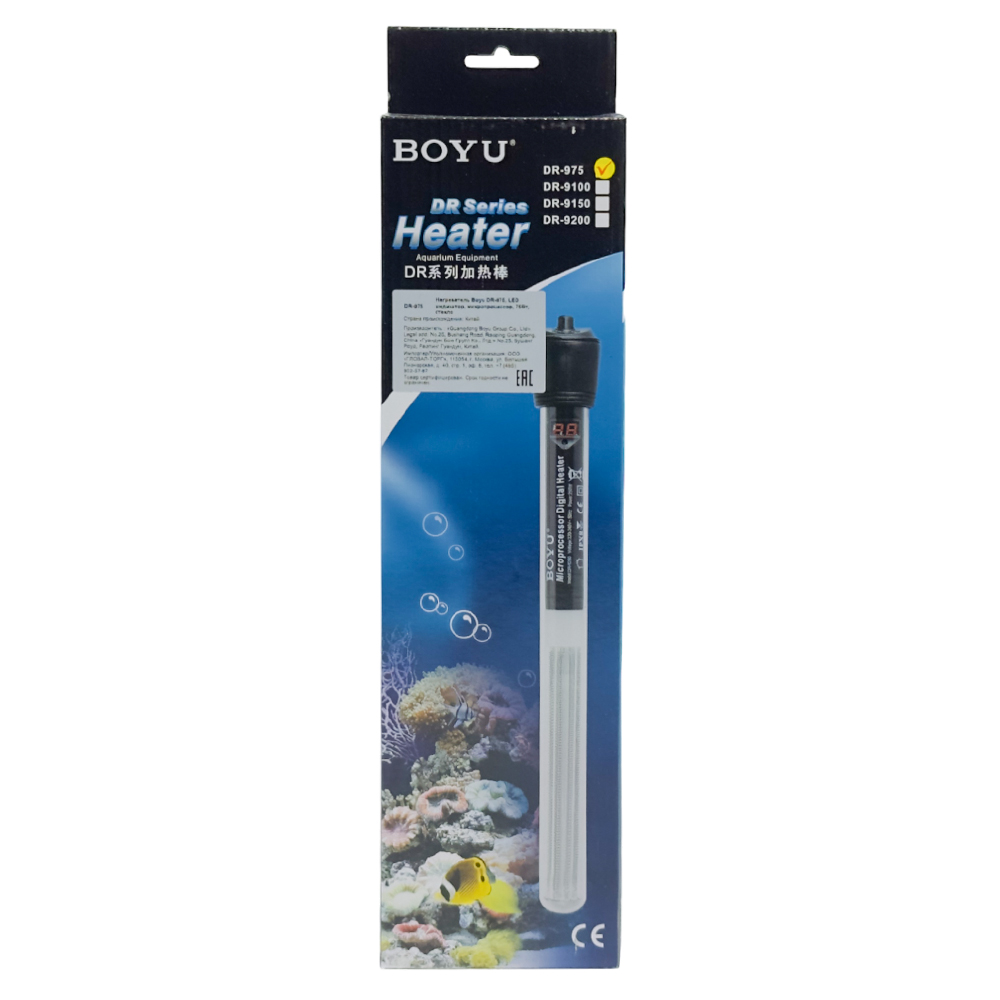 Нагреватель Boyu DR-975 класса премиум с микропроцессором, терморегулятором и LED индикацией имеет дисплей температуры. Кварцевое стекло. Защита от перегрева. Подходит для морской и пресной воды. Для аквариумов 60-90 л.