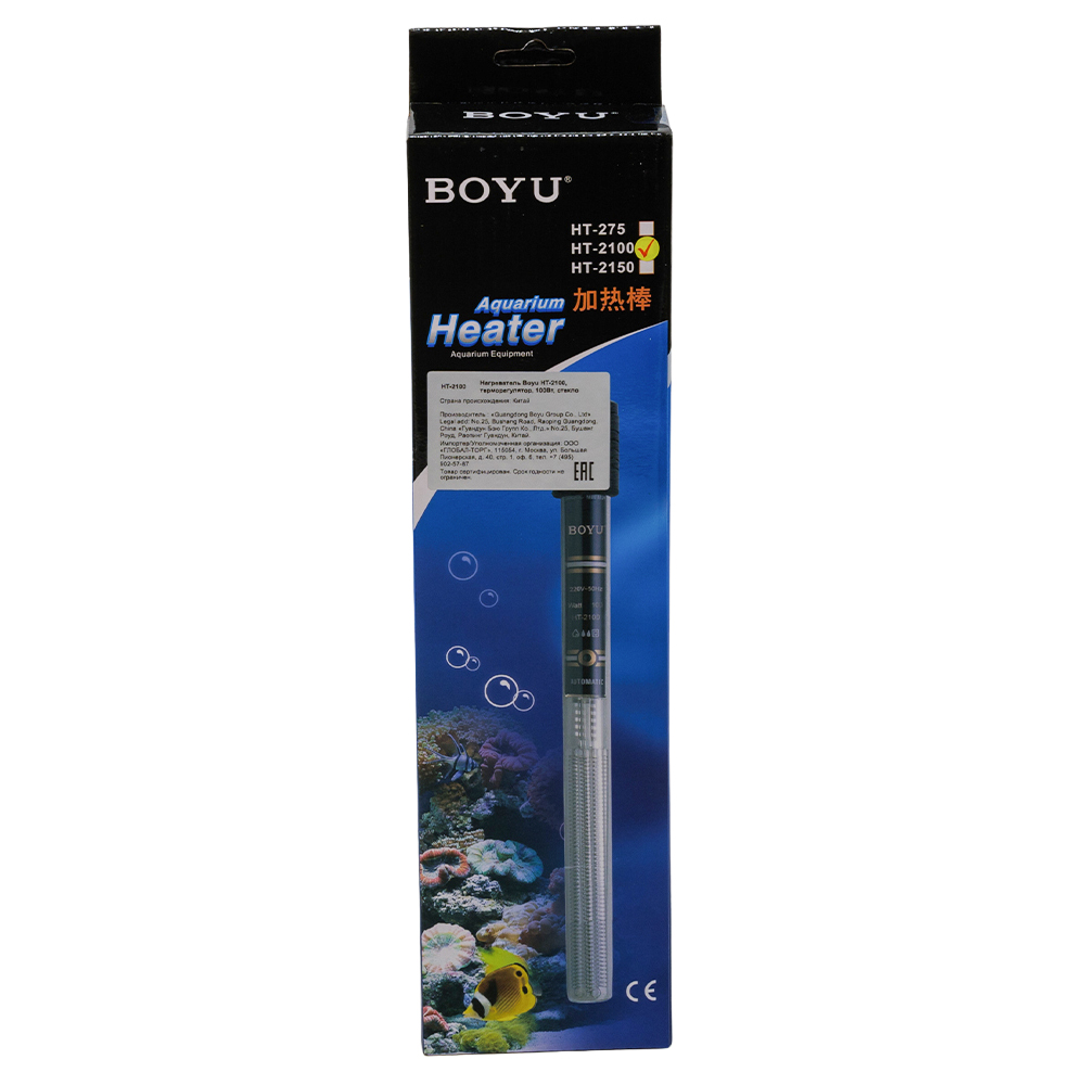 Нагреватель для аквариума Boyu HT-2100 – профессиональное решение для содержания аквариумных рыб и черепах. Стеклянный нагреватель с терморегулятором идеально подходит для аквариумов объемом 90-130 литров, обеспечивая стабильную температуру воды.